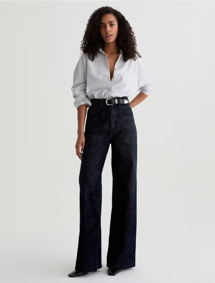 Adriano Goldschmied Jeans Deven high-rise ultra wide-leg jean made from a classic non-stretch flocked denim for an elevated feel.