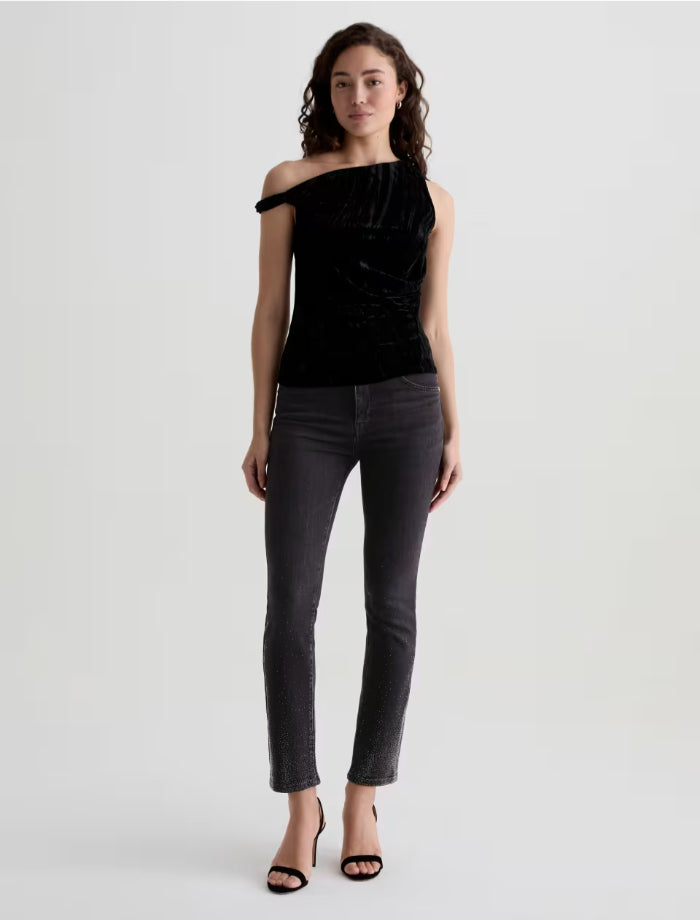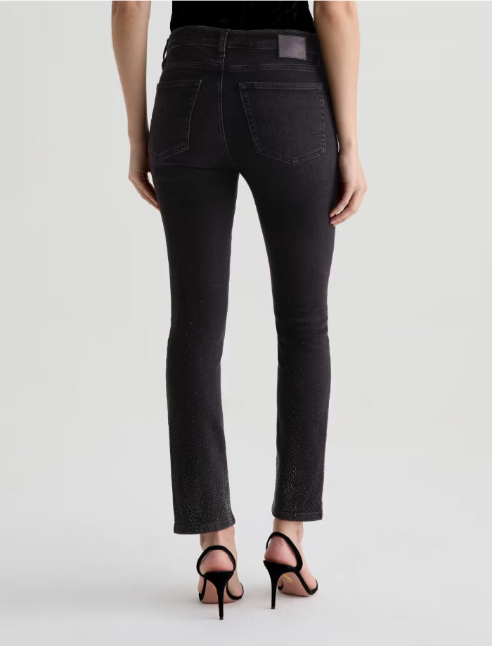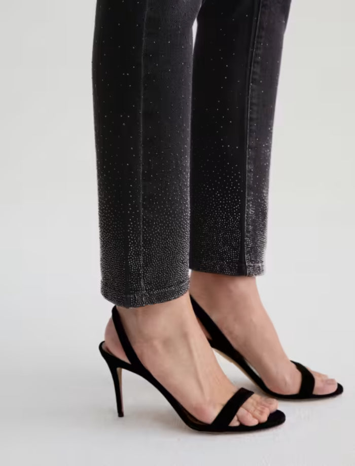 Adriano Goldschmied Mari pants in a mid-rise slim straight silhouette and an ankle length. Features a slight sparkle of a Glasgow constellation design.