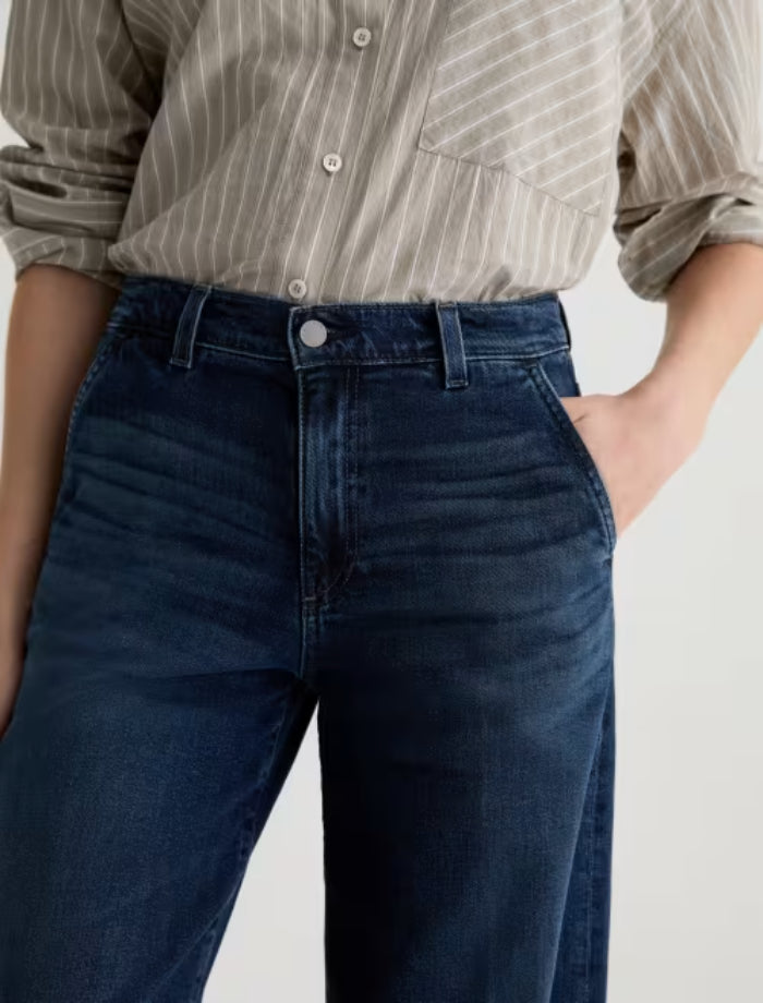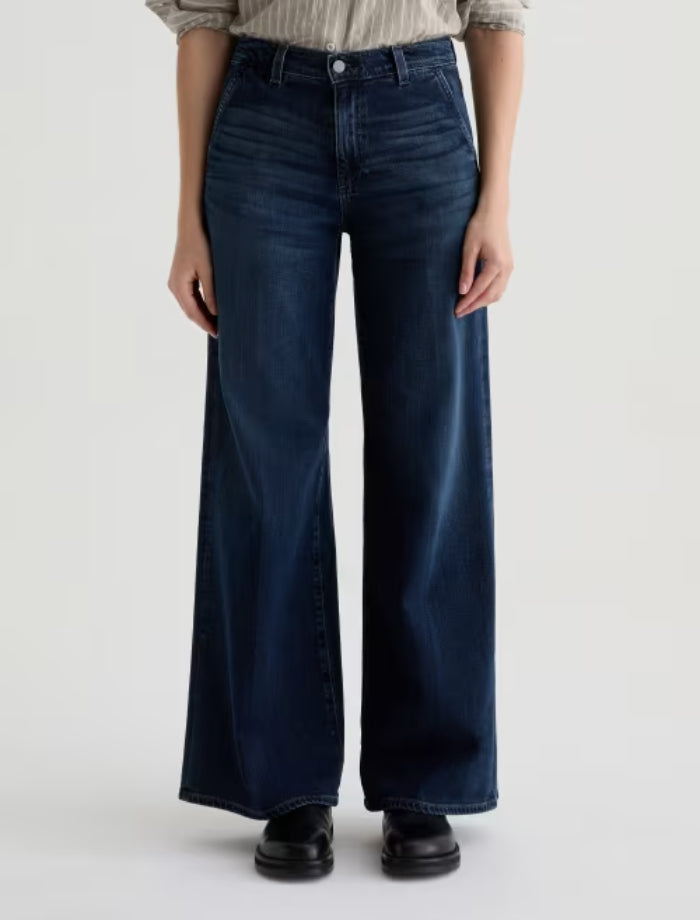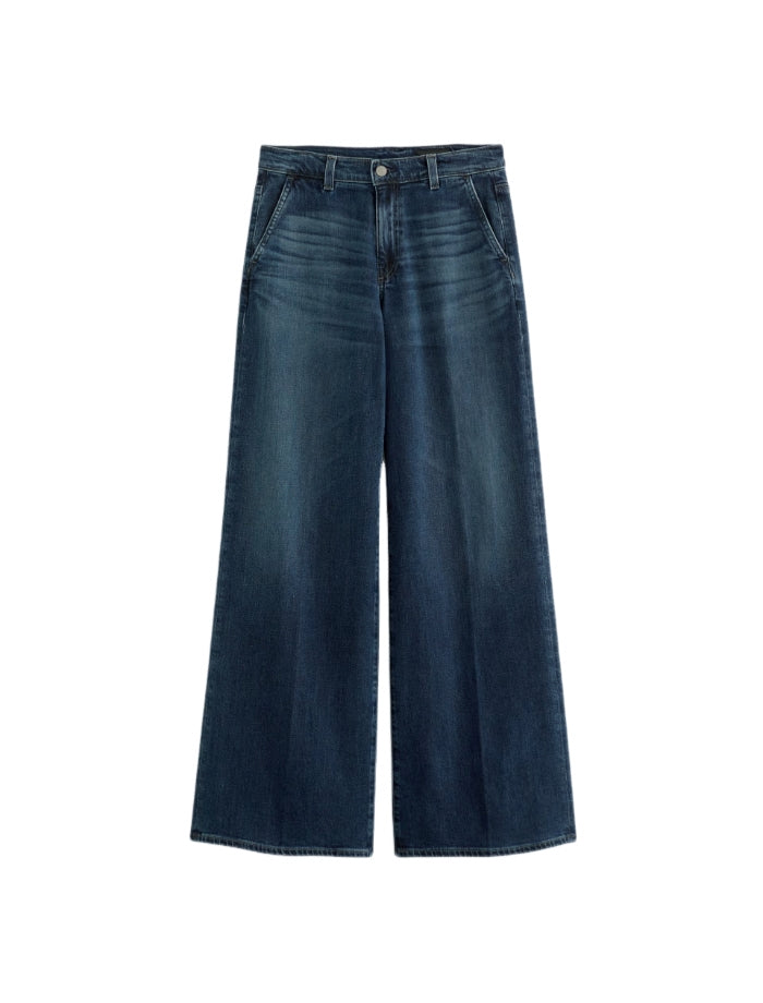 Adriano Goldschmied Stella jeans with a wide leg silhouette and a mid-rise fit. Made from premium denim sourced from Japan's Kaihara Mill.