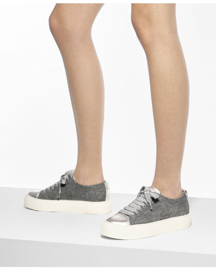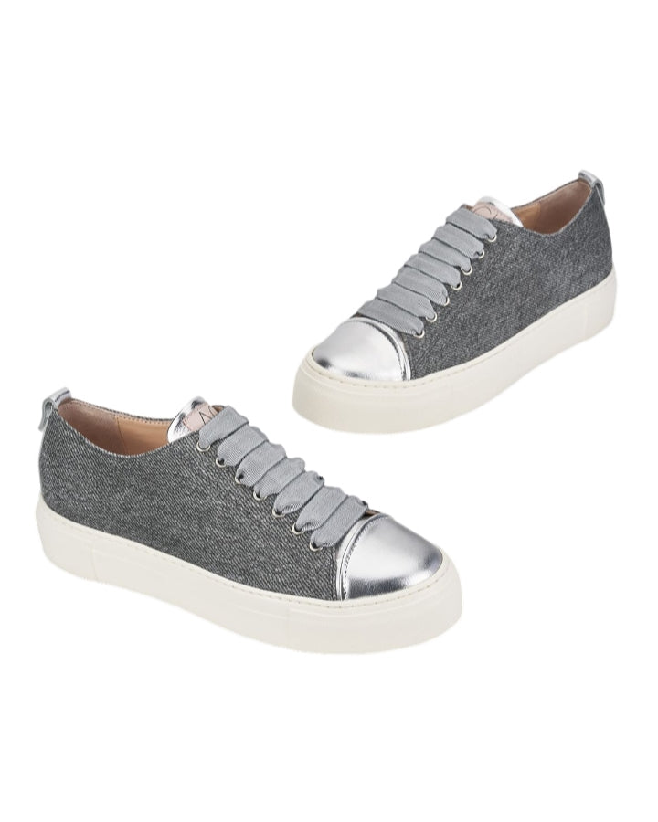 AGL refined minimalist sneaker with leather upper with metallic leather toe, grosgrain laces and 3 cm sole in ultra-lightweight air-expanded rubber.