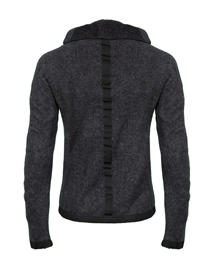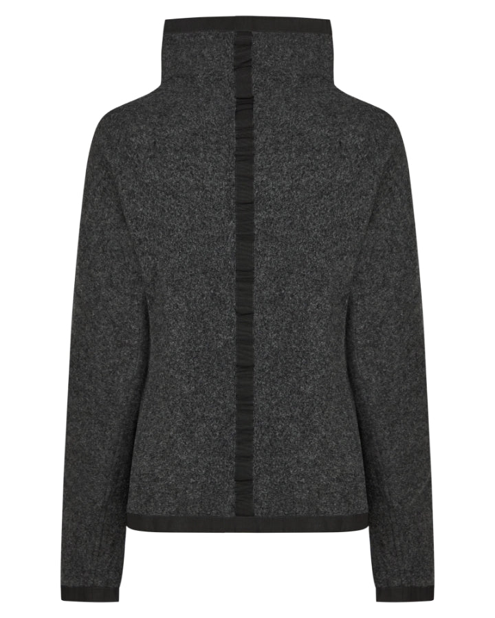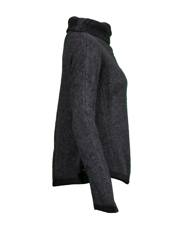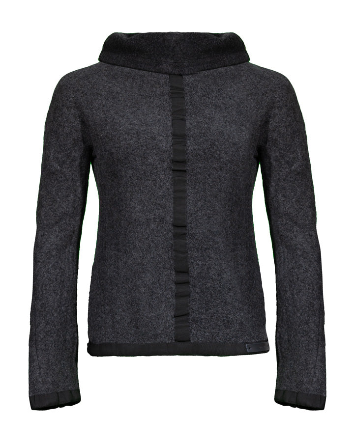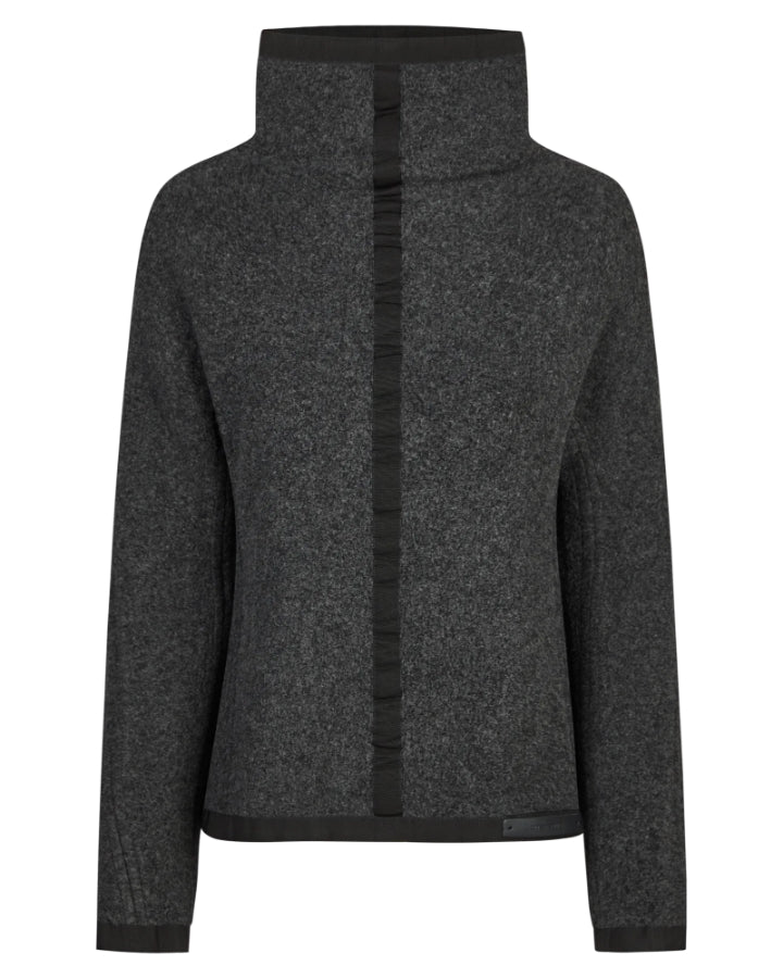 Annette Gortz ultra soft sporty fleece sweatshirt with a stand collar, grosgrain ribbon details, snap buttons at side hem, long sleeves with dividing seams, straight fit.