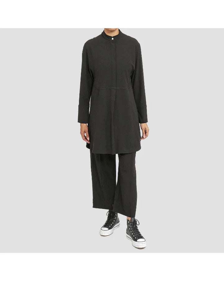 Ayrtight straight cut pant with slash pockets, elastic back waist, wide hems have button tabs to swap between flood and lantern shape.