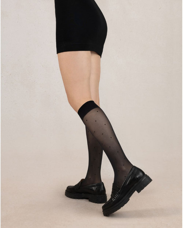 Bleu Foret Plumetis 30D semi-opaque knee-highs subtly adorn your legs. Fine, soft matte finish with comfortable edges and softened with Argan oil.
