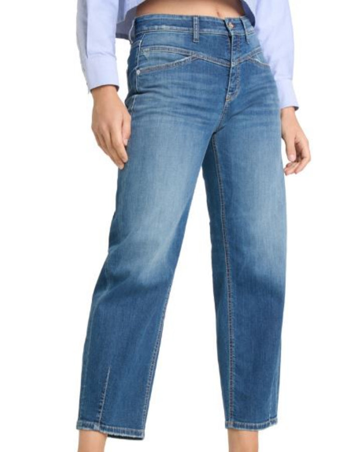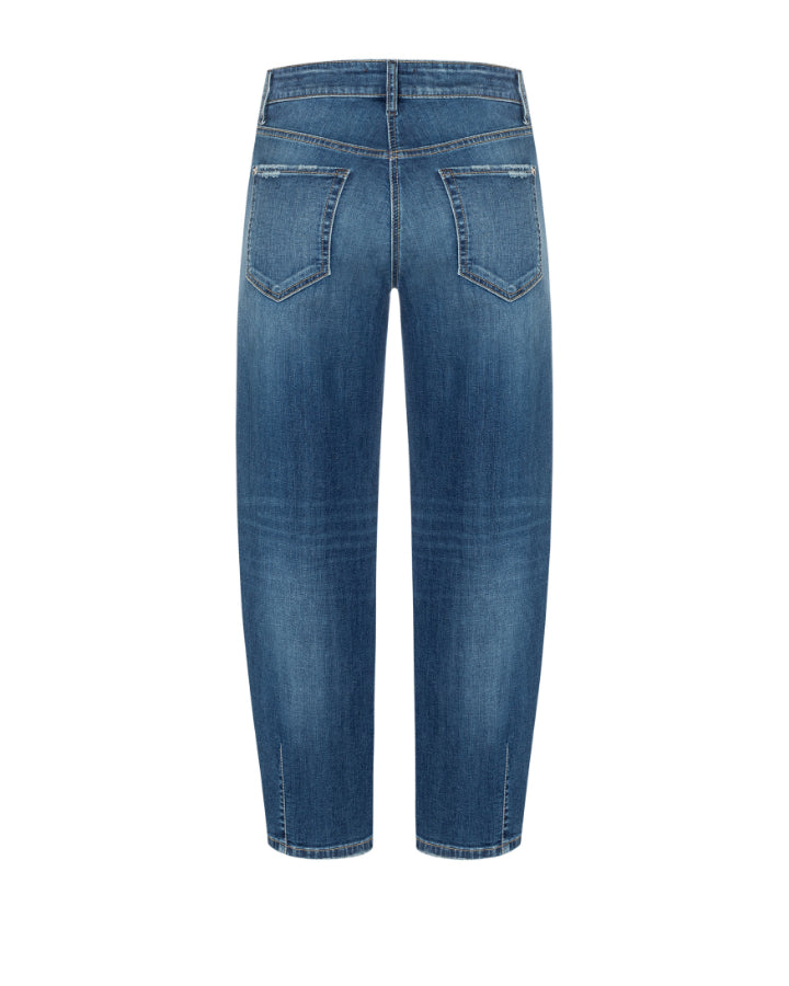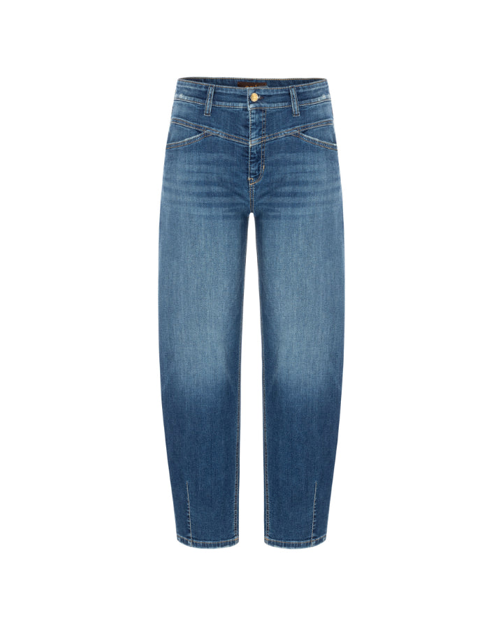 Cambio Elin O-shaped jean features a slightly cropped style, ideal for versatile looks. The wide leg, which tapers towards the bottom, creates a balance between width and definition. The diagonal pockets on the front add further flair. Length 27".
