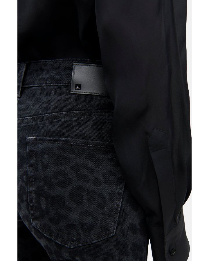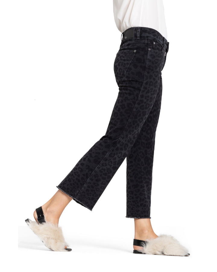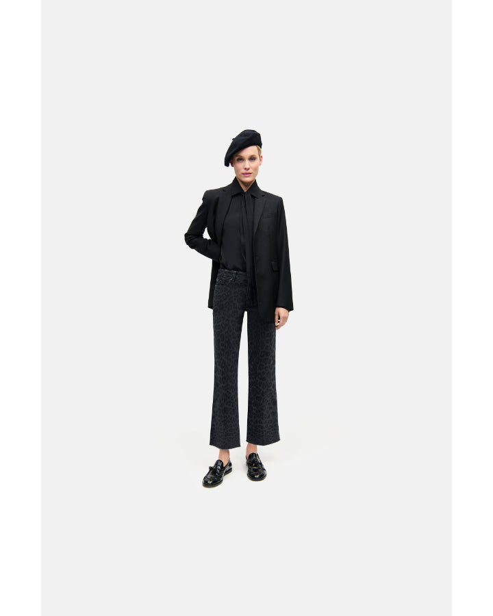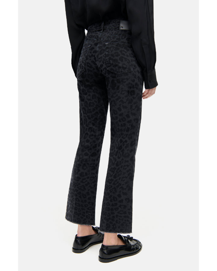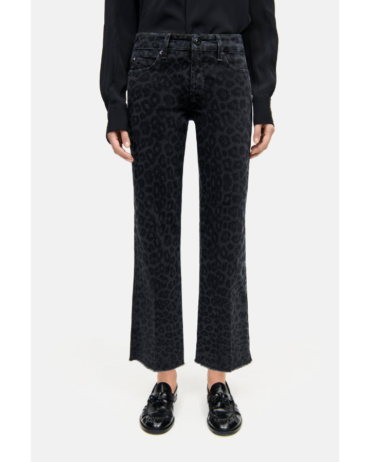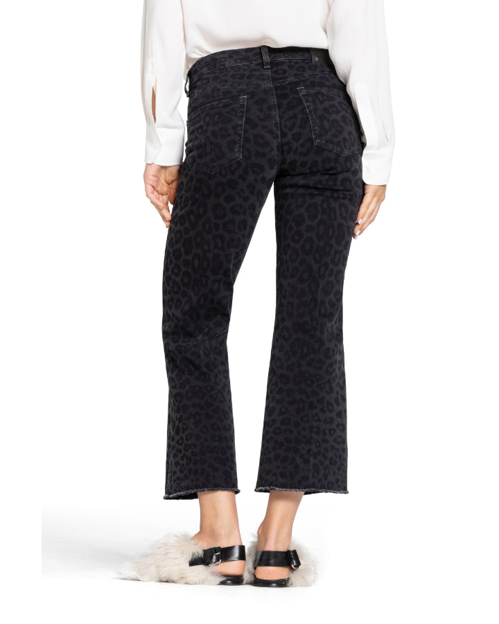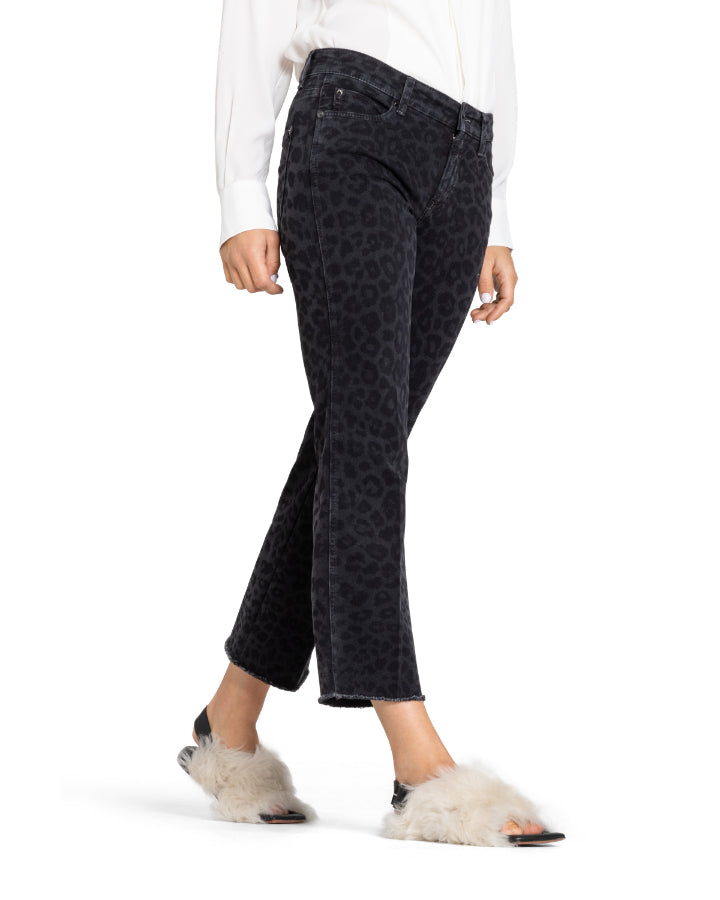 Cambio Francesca pants in a unique, subtle leopard print with a raw hem and a slight flare at the bottom.