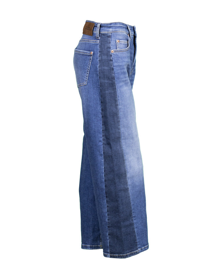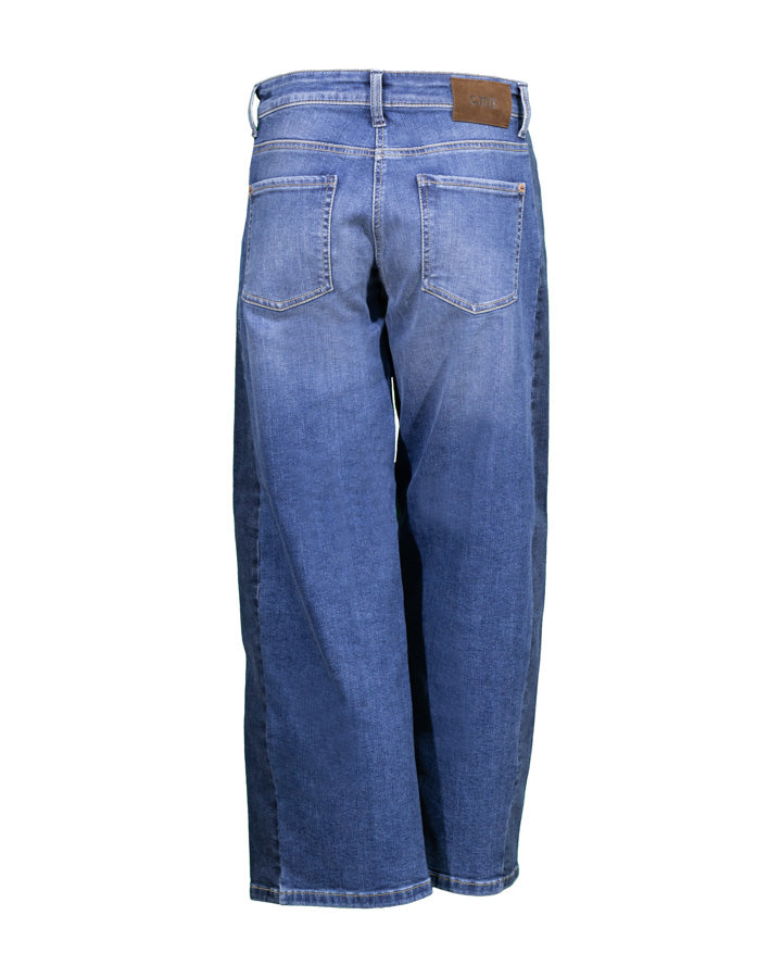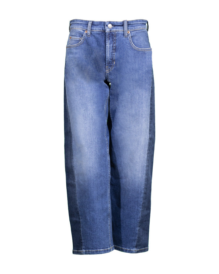 Cambio Oria barrel leg jean with a mixed media insert detail at the sides for a modern twist on a classic.