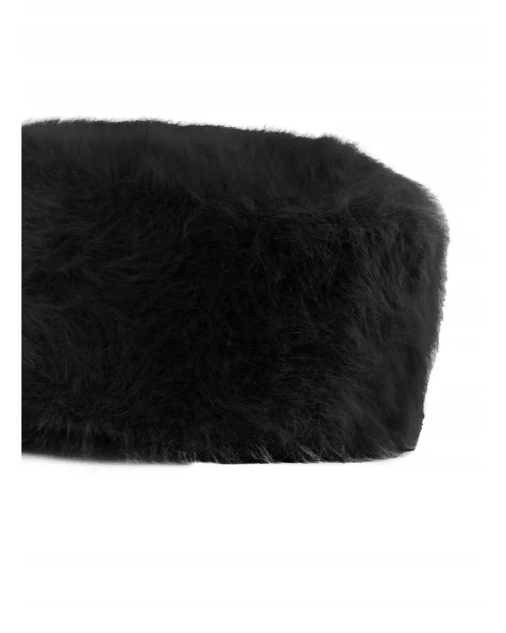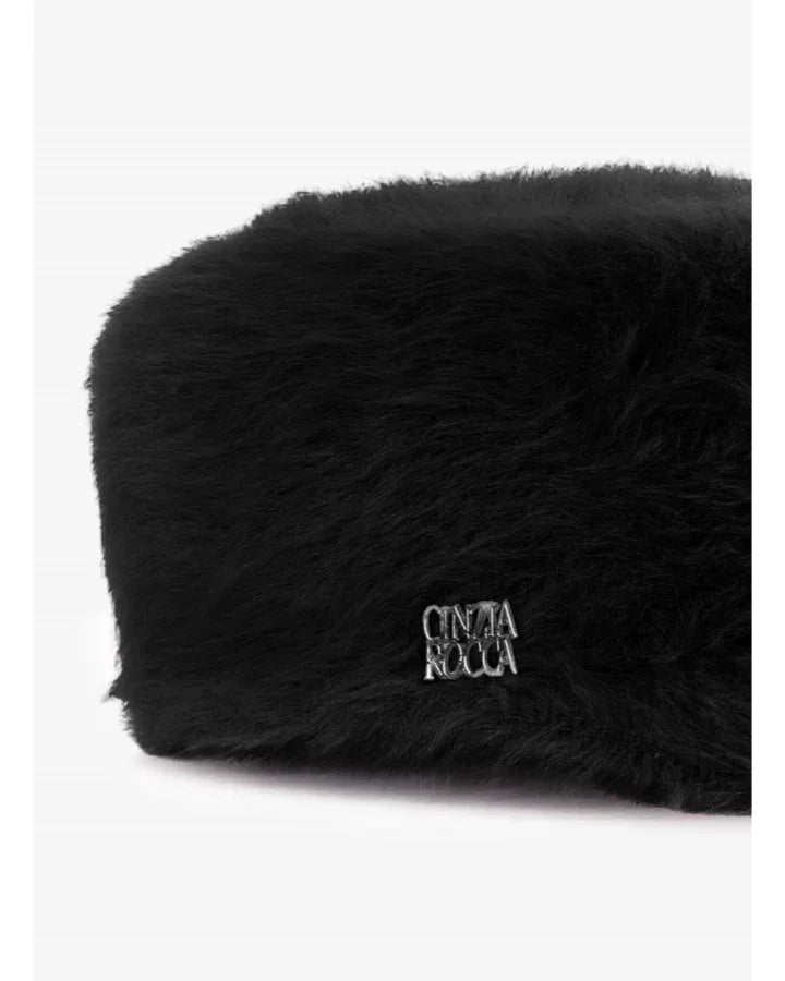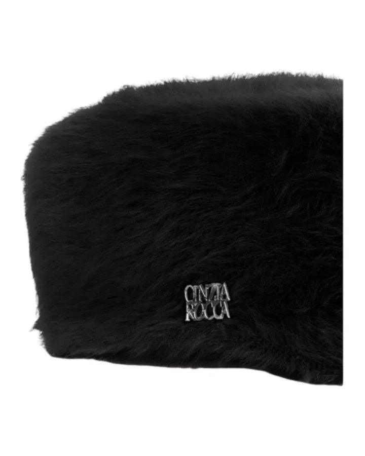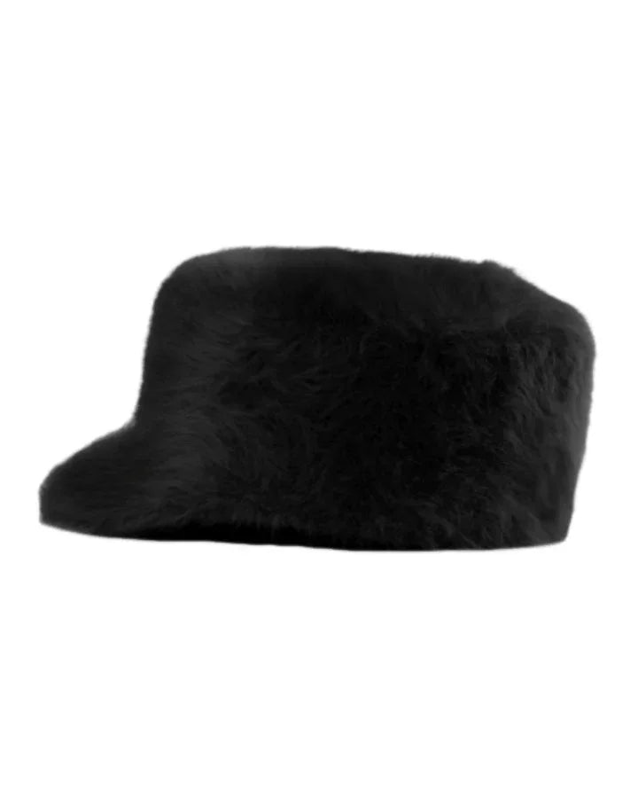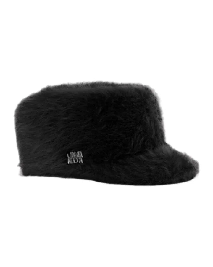 Cinzia Rocca soft fur-effect wool train utility style hat with visor and brushed metal Cinzia Rocca logo.