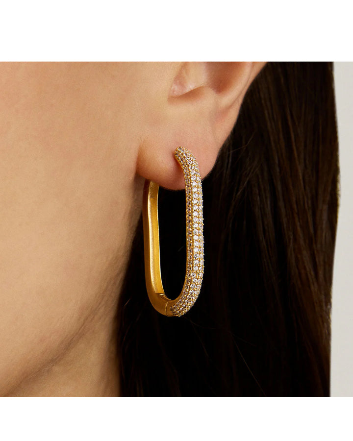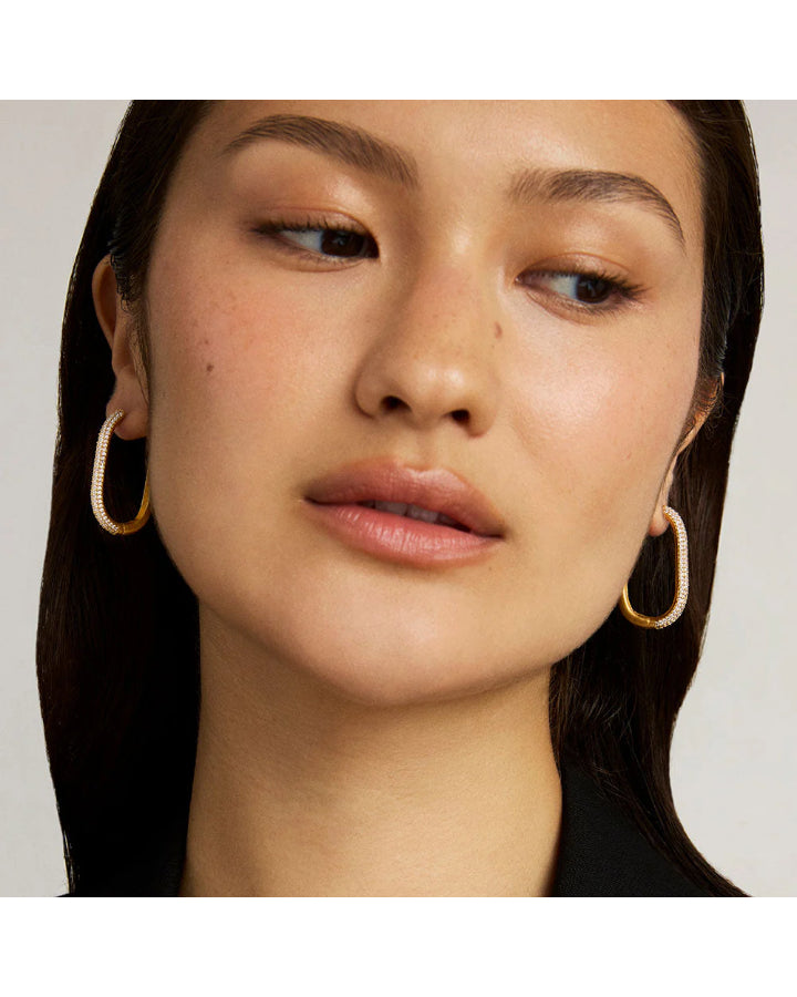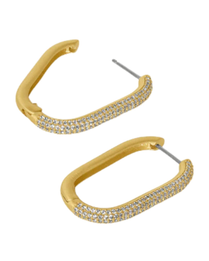 Dean Davidson pave-embellished hoop earrings are marked by an oval-like shape and an easy-to-fasten hinge closure. Length 1.4".
