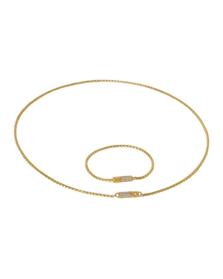 Dean Davidson longer softbox chain earns a touch of shine via pavé-embellished closures in this versatile, two-in-one piece. Playful, these junctures can separated out into both a shorter chain and a bracelet for a touch gleam from neck to wrist.. Length 14" - 32" Adjustable.
