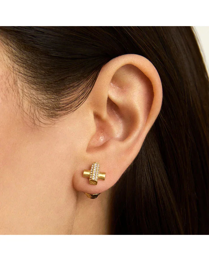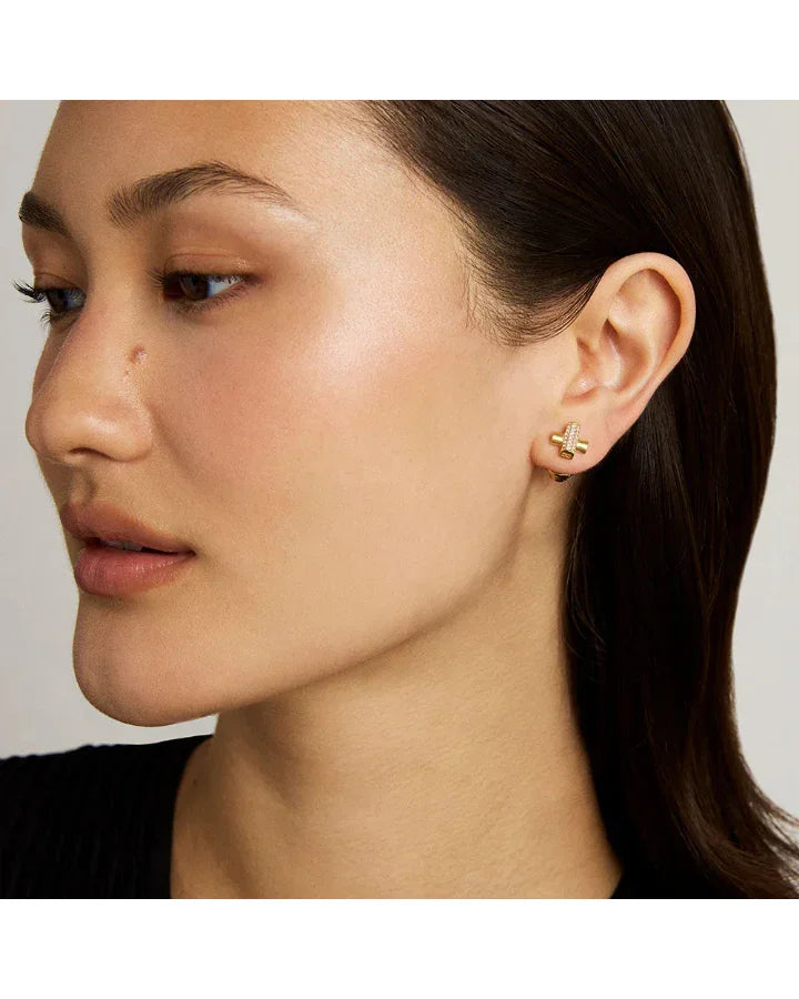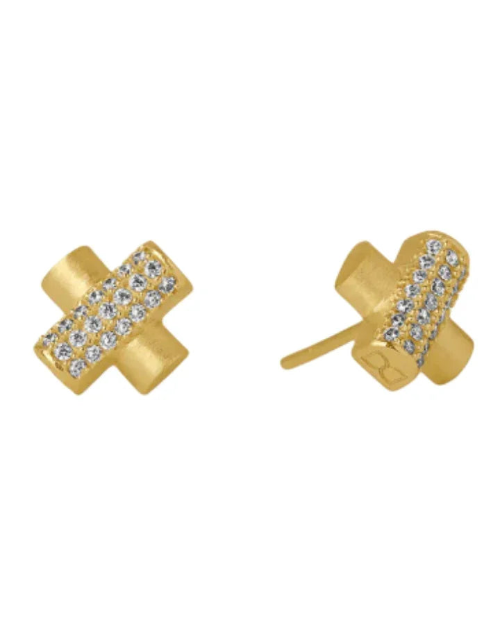 Dean Davidson architecturally minded X-shape stud earrings complete with a dusting of cubic zirconia petit pavé stones.