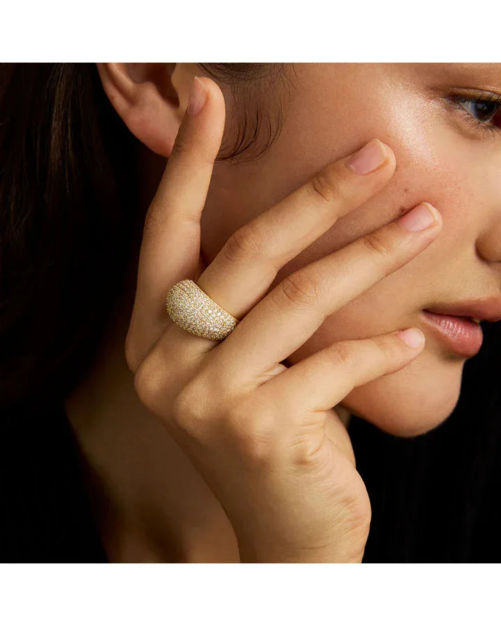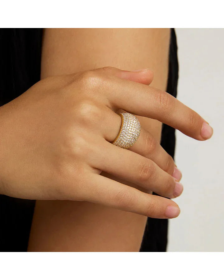 Dean Davidson dome-shaped silhouette ring covered in petit pavé gemstones is equally ideal for elevated occasions as it is a low-key T-shirt look. Width 0.4".