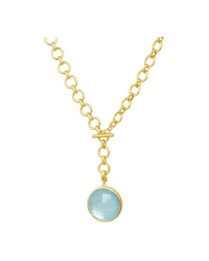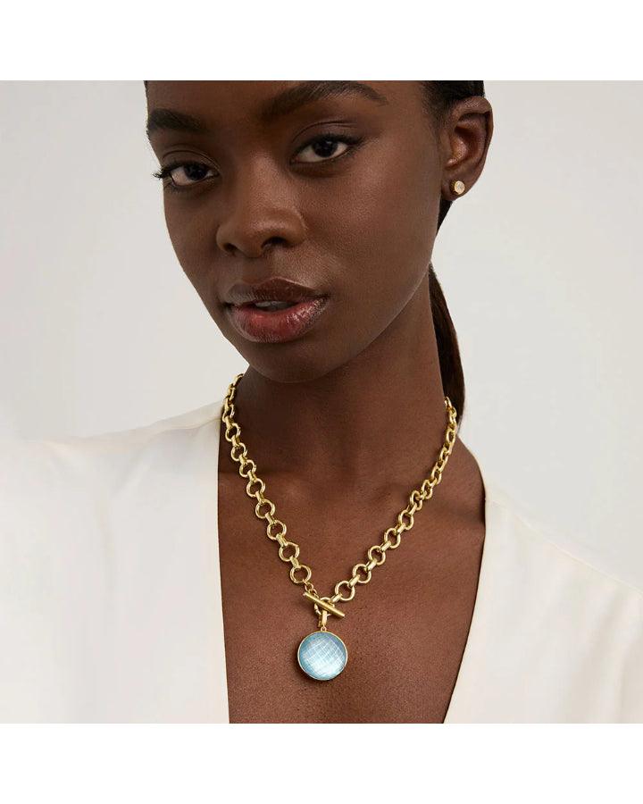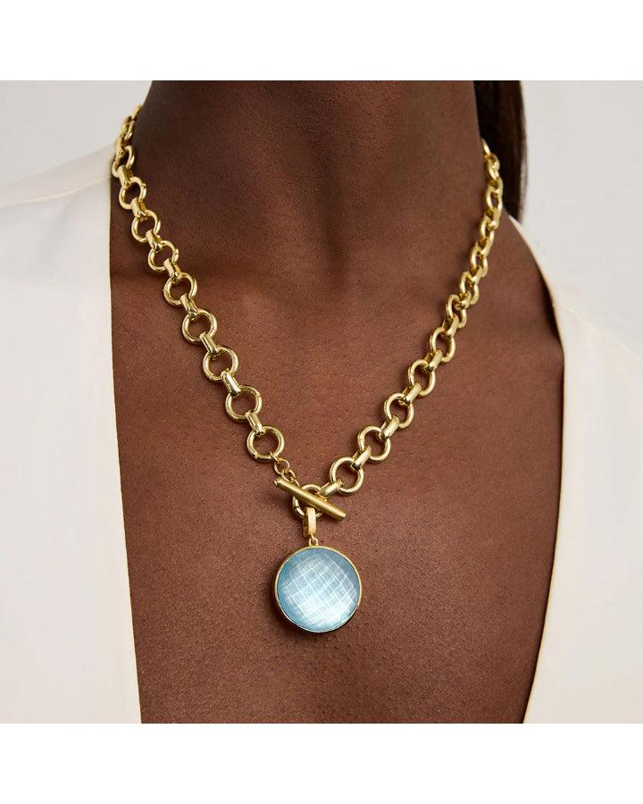 Dean Davidson's collar necklace features a brilliant-cut gemstone suspended elegantly from a bold link chain, secured with a signature DD toggle. Designed for versatility, the gemstone charm can be removed, and the piece can be styled as a lariat, worn front to back for multiple striking looks.