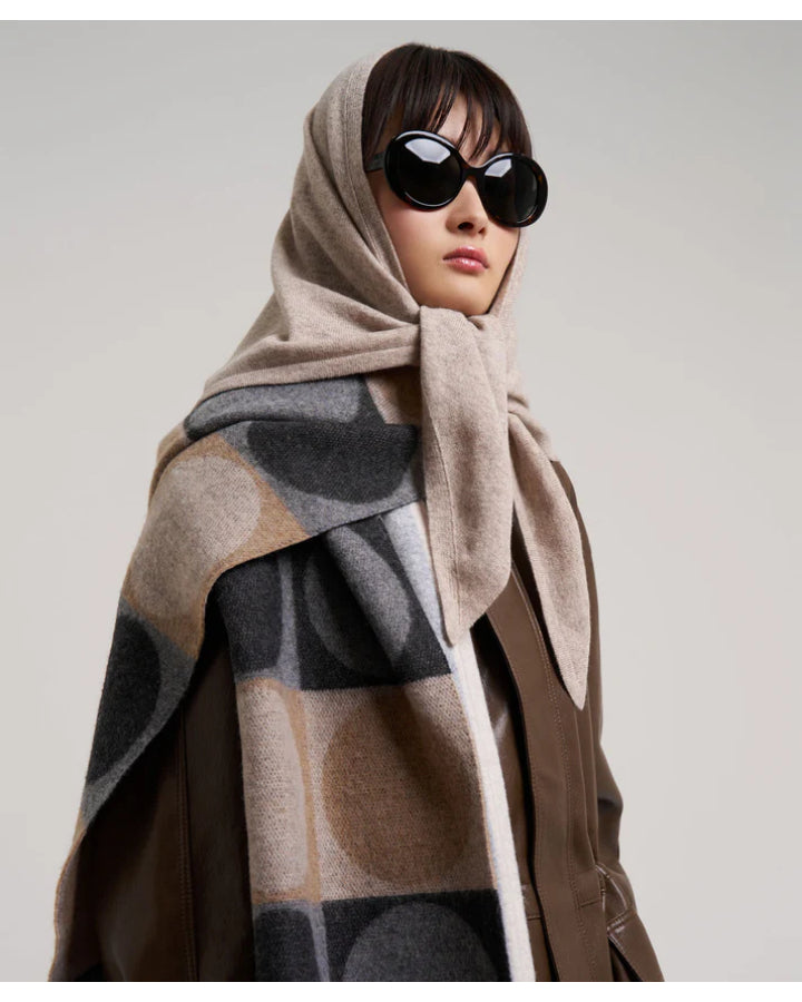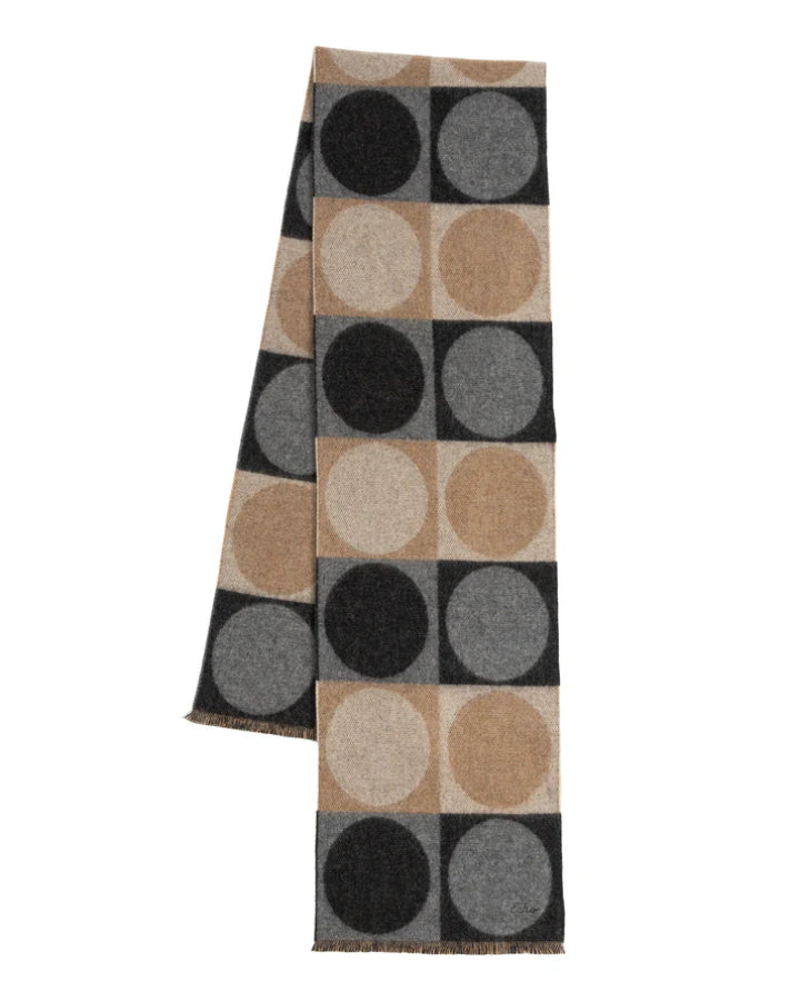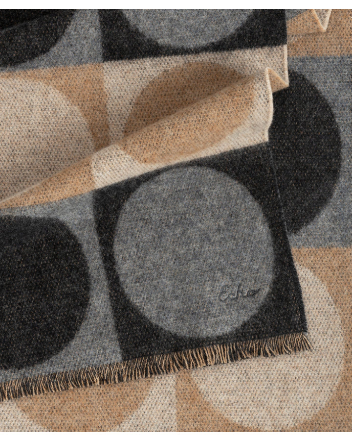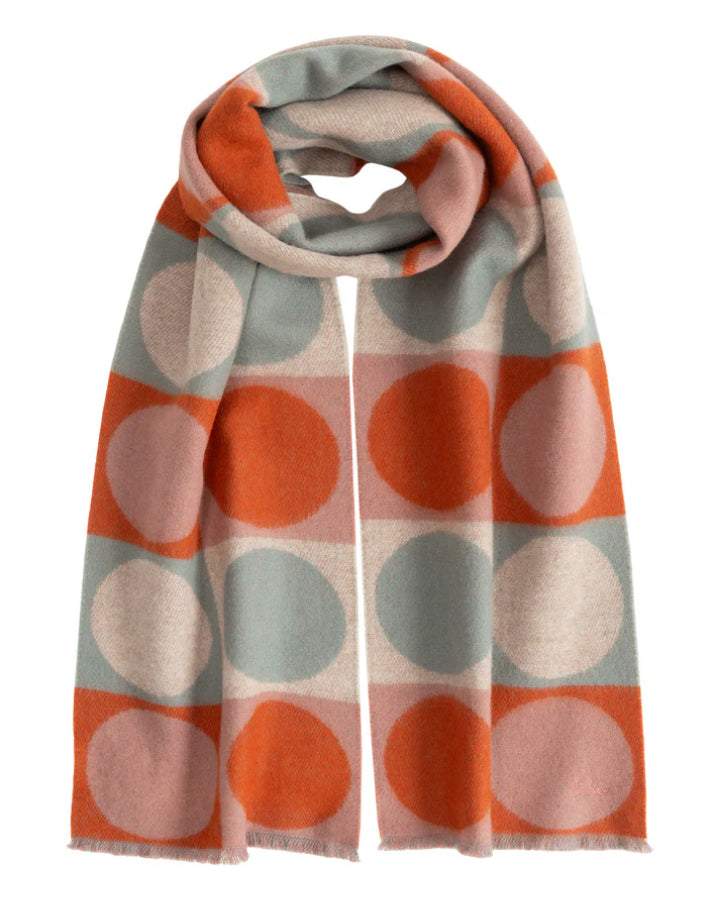 Echo wool jacquard scarf features a geometric dot pattern inspired by the geometric art movement. Soft, responsible, and perfect for everyday wear. Dimensions: 12" x 72".