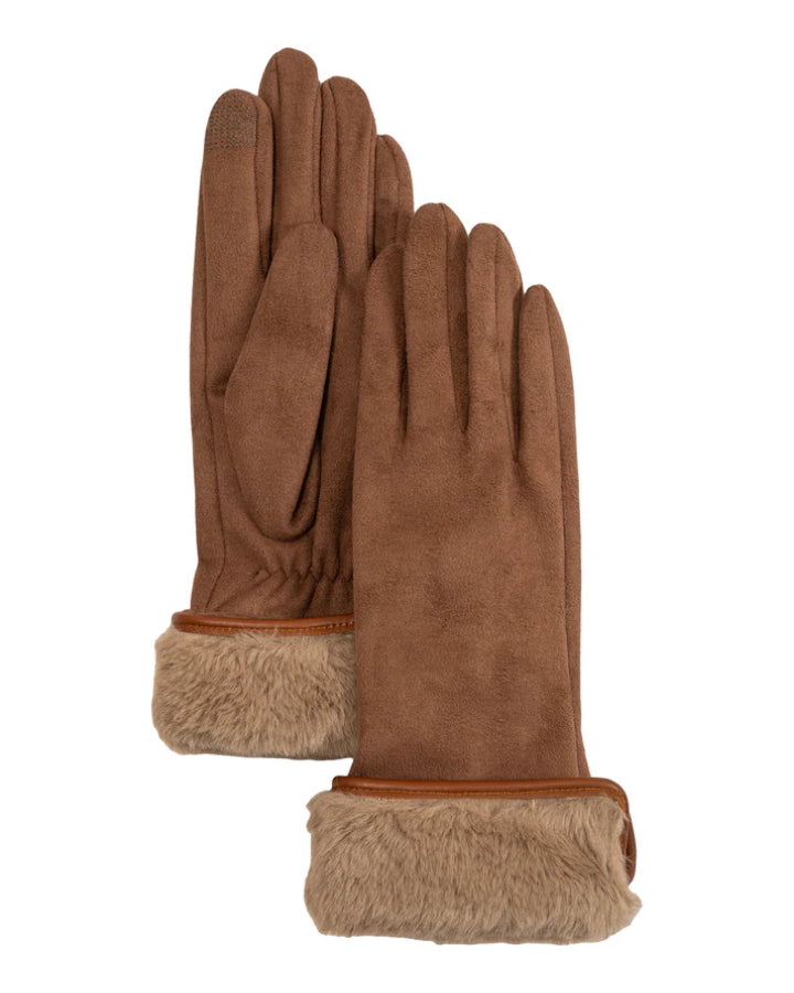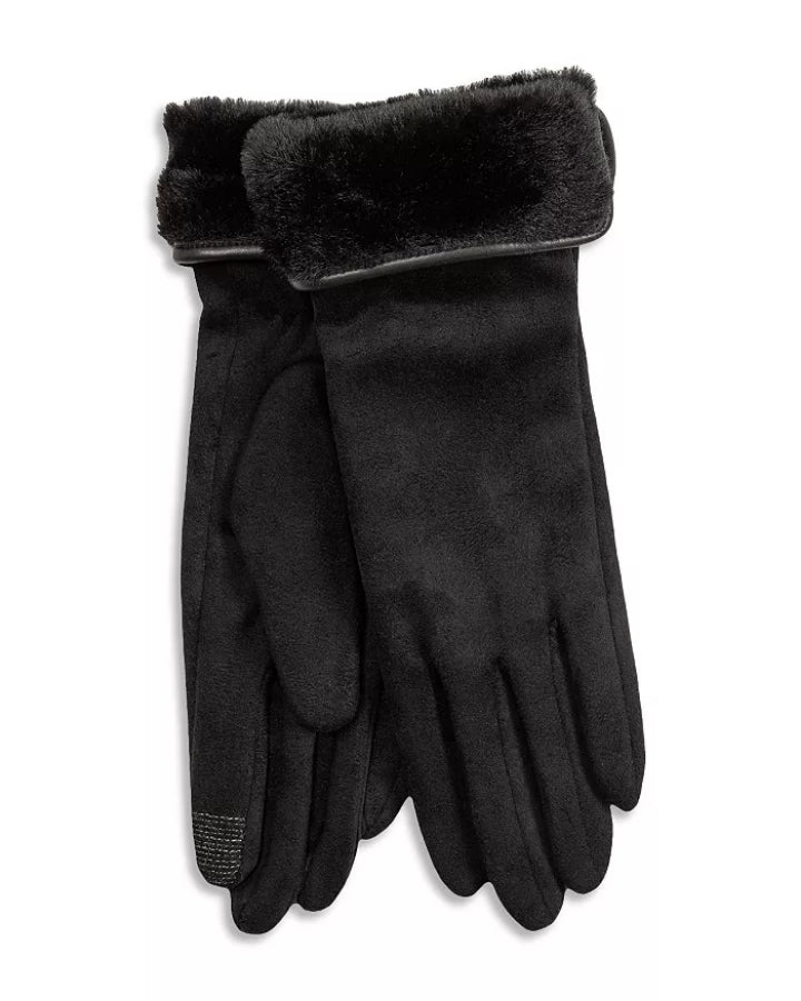 Echo Stretch Suede Fold-Up Faux Fur Cuff Gloves