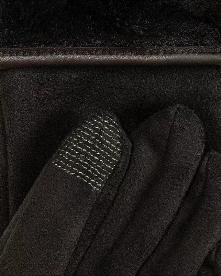 Echo Sleek and functional gloves features the new stretch faux suede for a polished look and flexible fit. A fold-up faux fur cuff adds warmth, while vegan leather piping completes the design.