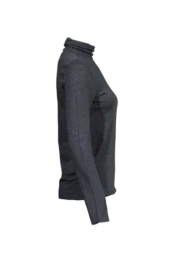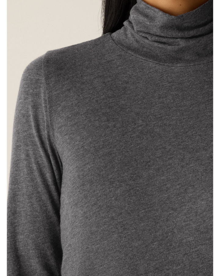 Eileen Fisher subtly sheer knit soft cotton-tencel blend turtleneck top with long sleeves. Size S - Length 24 1/2".