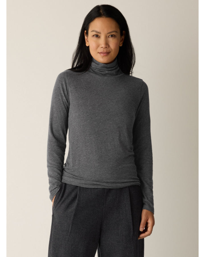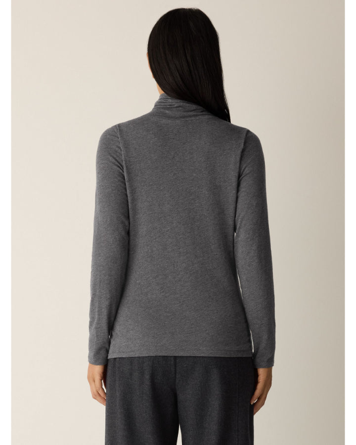 Eileen Fisher Melange Sheer Cotton Blend Knit Turtleneck