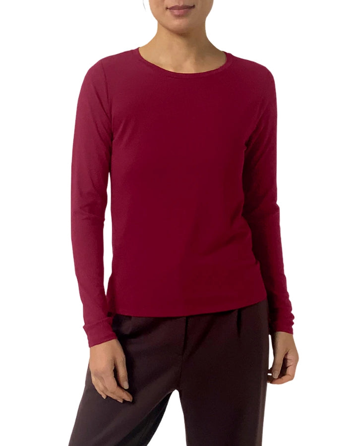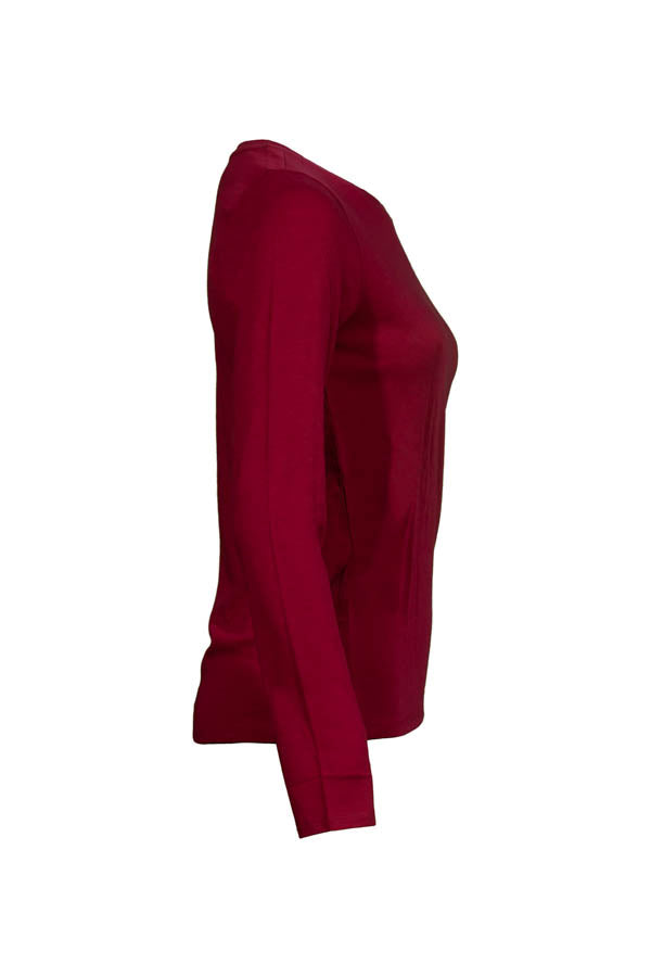 Eileen Fisher snug long sleeve tee features a round neck with banded trim in a subtly sheer blend of cotton and Tencel™ Lyocell that dresses up or down. Size S - 24 1/2".