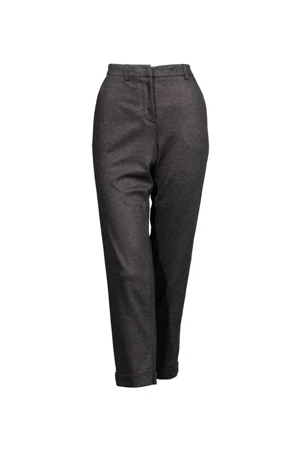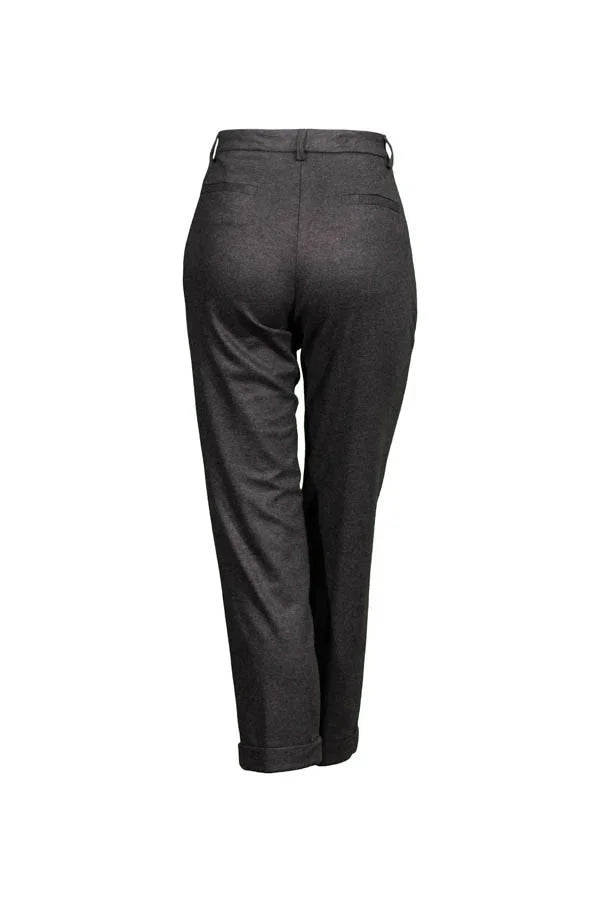 Good Match classic brown pants with a zipper and a full-length pant, tailored for a structured shape. Two pockets at the sides.