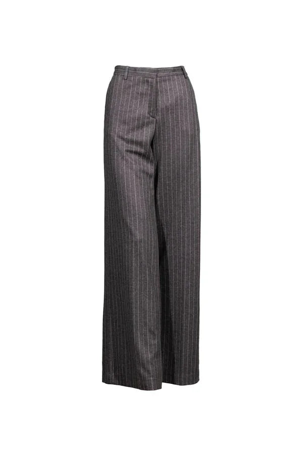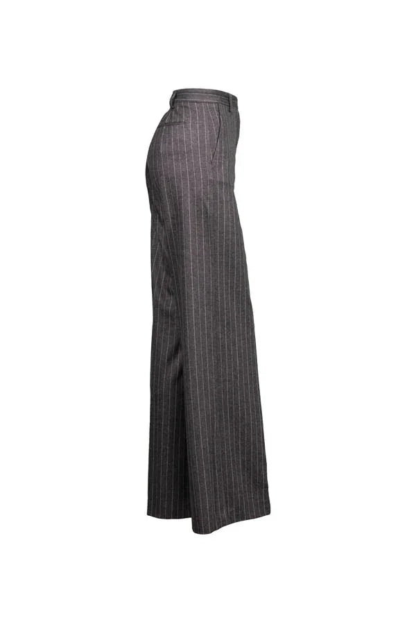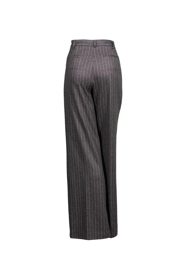 Good Match wide leg classic pinstripe pants with side and back pockets. Free-flowing silhouette for an ease of movement.