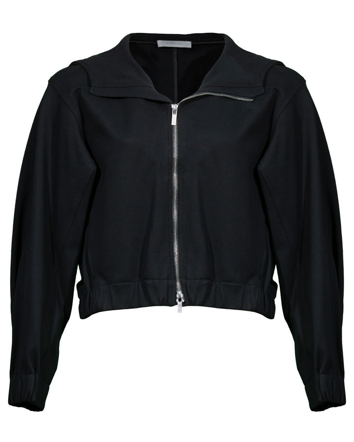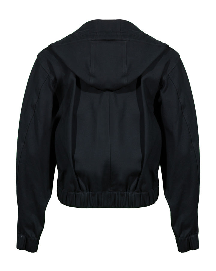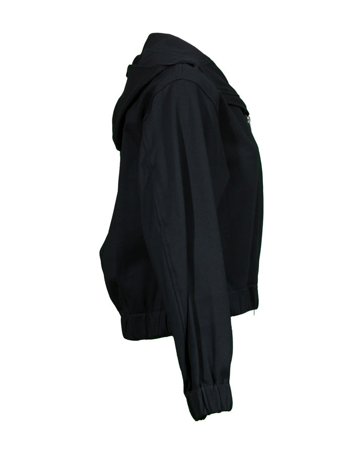 Helmut Lang hooded jacket with a fully zipped front and a classic collar. Features a gathered waist and cuffs.