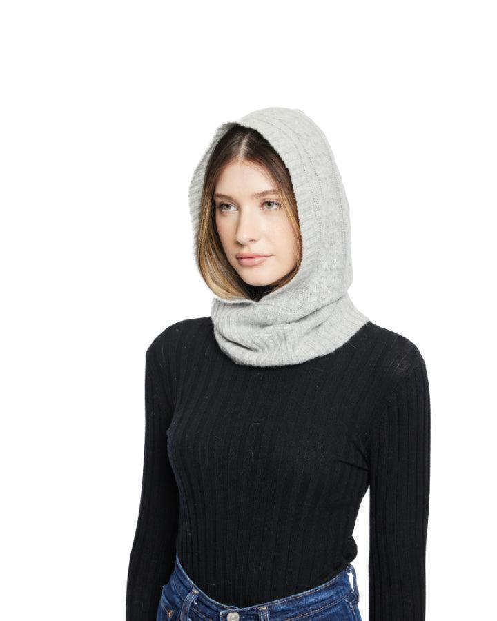 HiSO snood style cashmere blend hood with cable and rib knit detail.