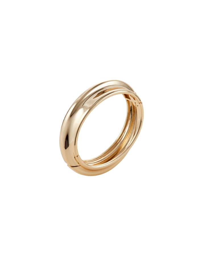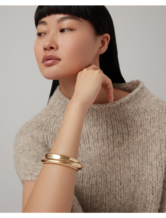 Jenny Bird Lennon bangle with a contemporary organic shape and deep contours. This custom bracelet opens and closes with a hinge and tab lock closure. To open, push down on the highest point of the clasp before pulling the bracelet open. To close, listen for a "click" to ensure tab is locked properly. Medium Size, 6"