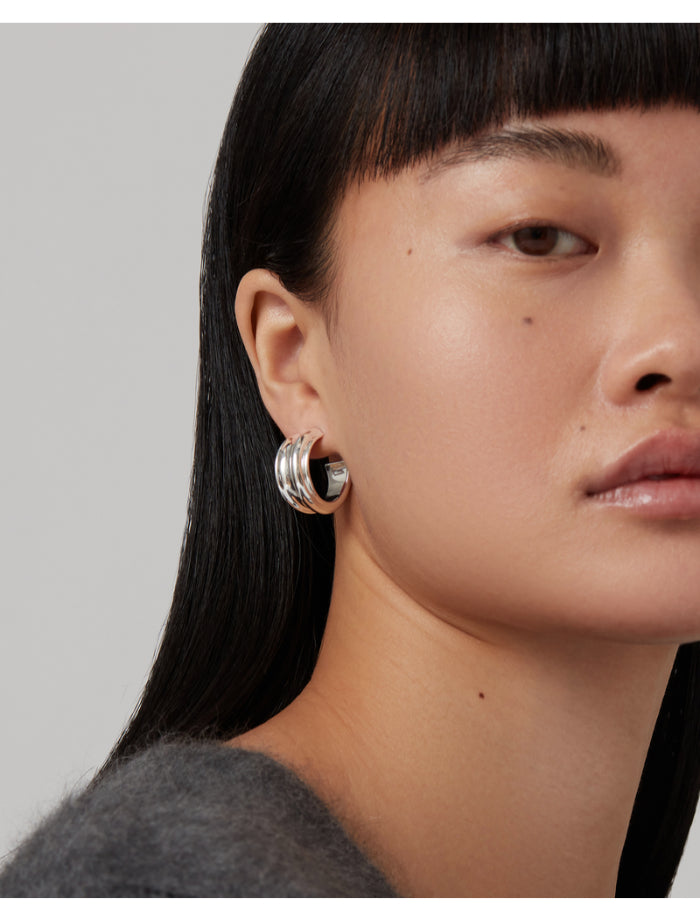 Jenny Bird Lennon silver hoop earrings with deep contours and flat disc earring backs for extra comfort.