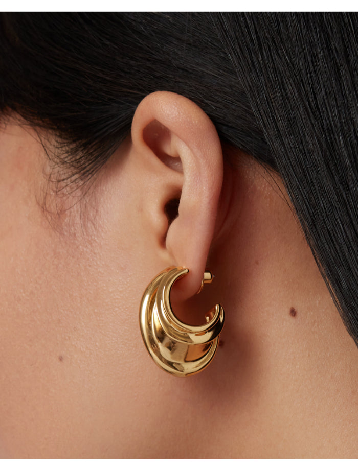 Jenny Bird Leona hoops featuring sculptural stretches and organically formed grooves. Single earring including backing weight: 10.3g / 0.36oz