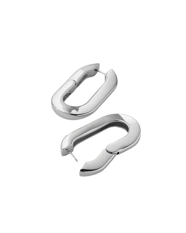 Jenny Bird large, custom U-shaped hoop opens and closes with a hinge. Finished in high-polish silver. Length 1.57", Width 0.9".