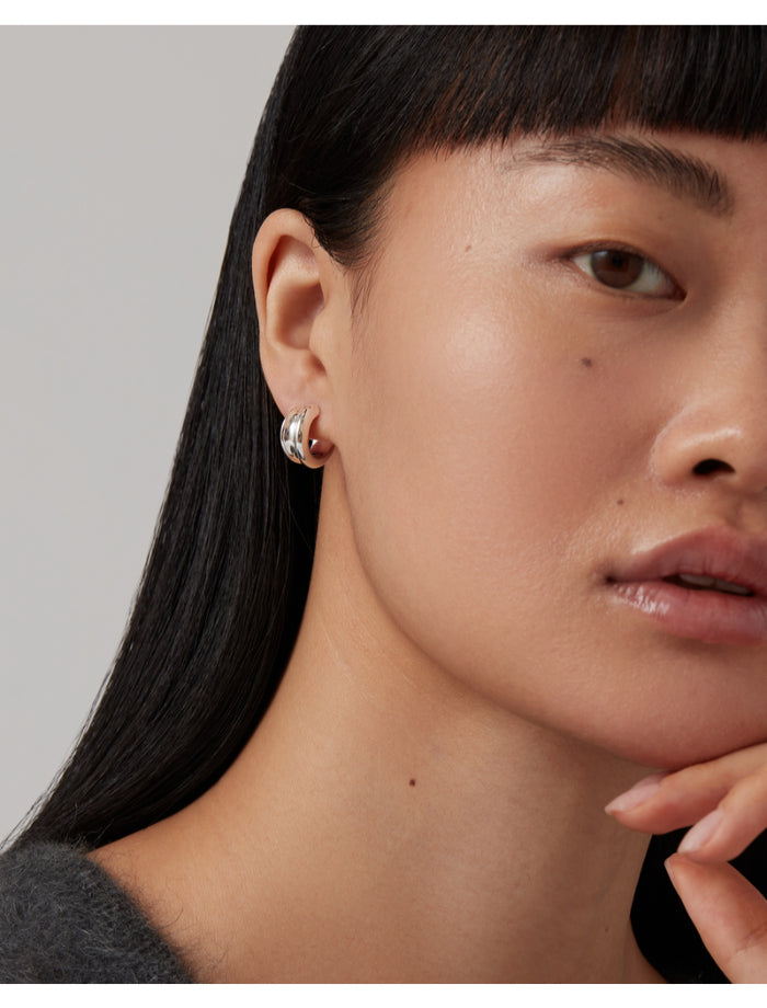 Jenny Bird Mini Lennon hoop earrings with deep contours. Cylinder Backings.