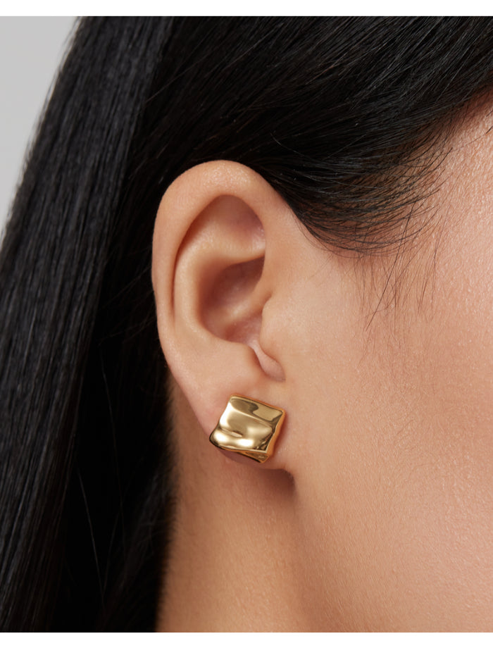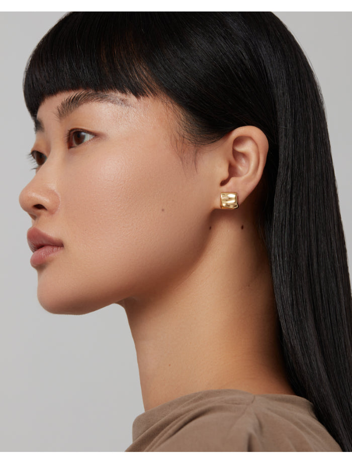 Jenny Bird Mini Sundra gold stud earrings inspired by a sand dune shaped by natural winds. Features flat disc backings.