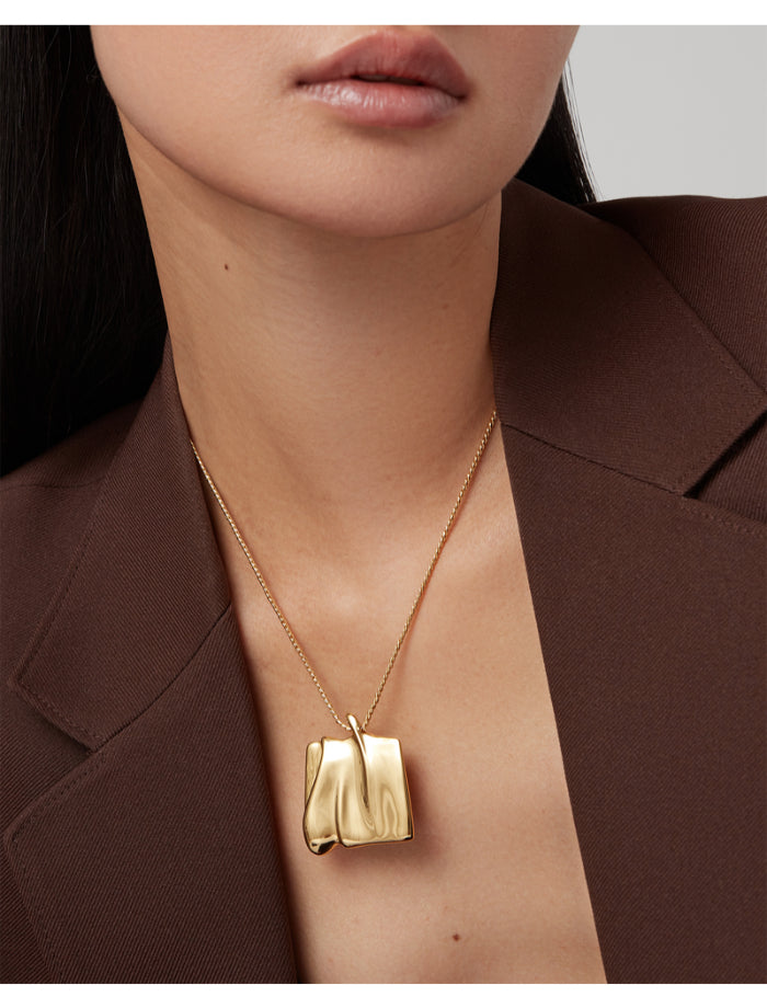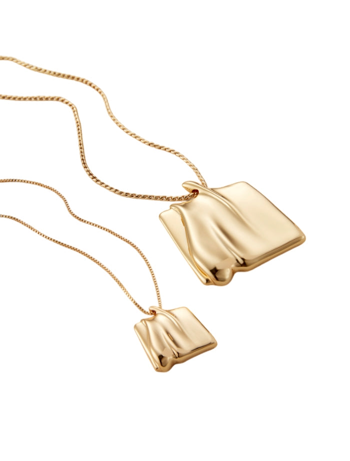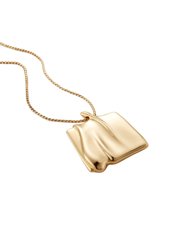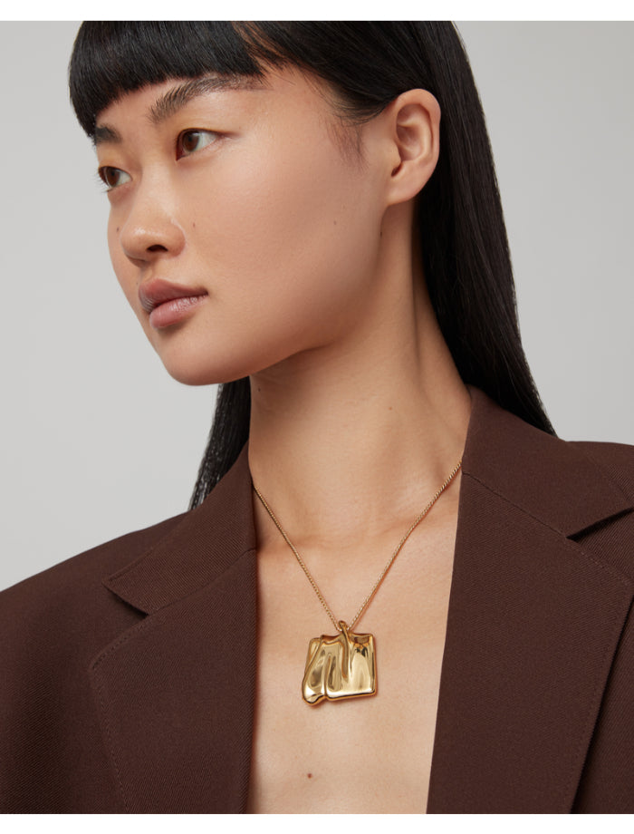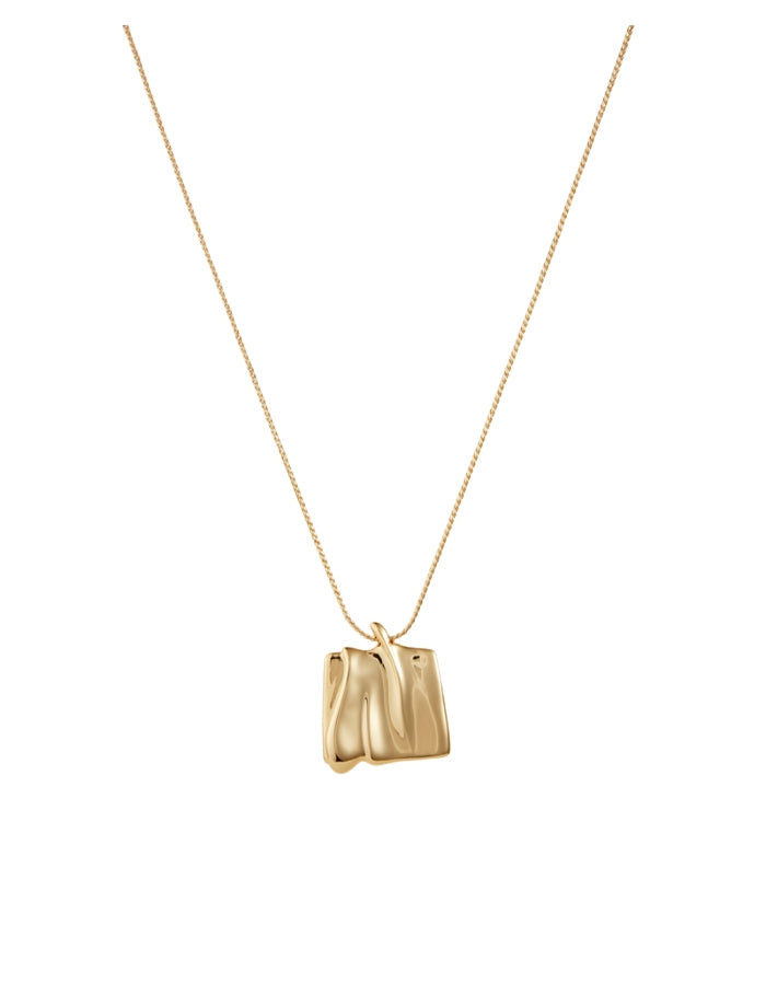 Jenny Bird Sundra pendant necklace inspired by sand dunes shaped by natural winds. The large organic square pendant glides along a gold chain. Features a shortening ring, making it easy to adjust and wear at 18" or 20".