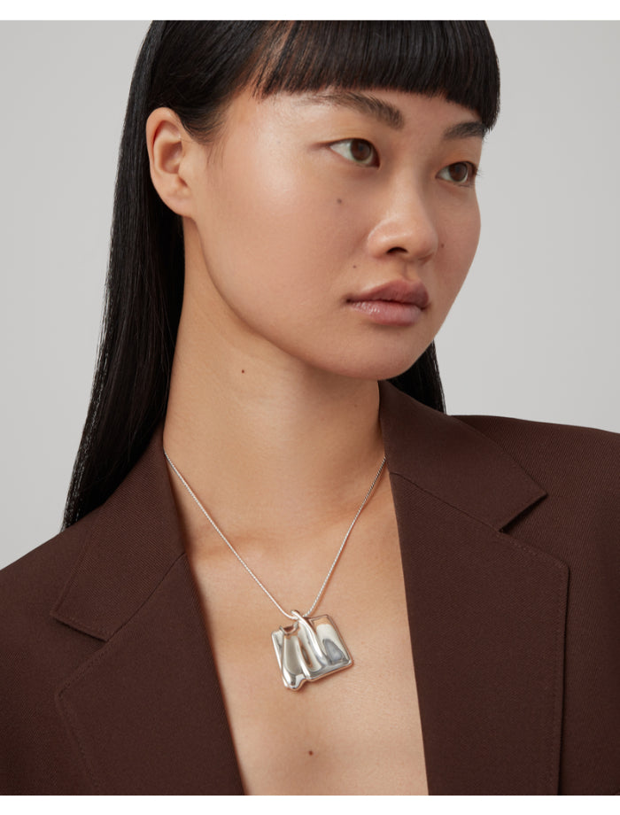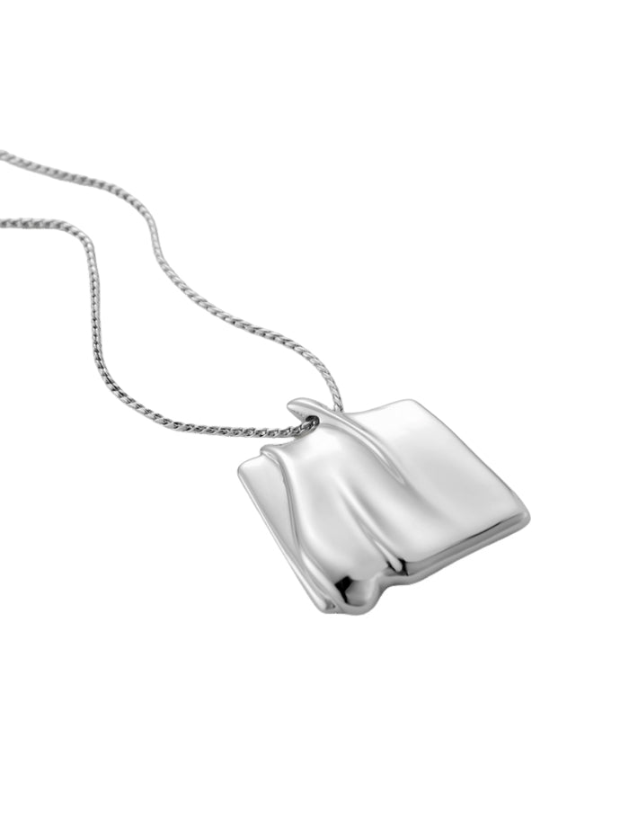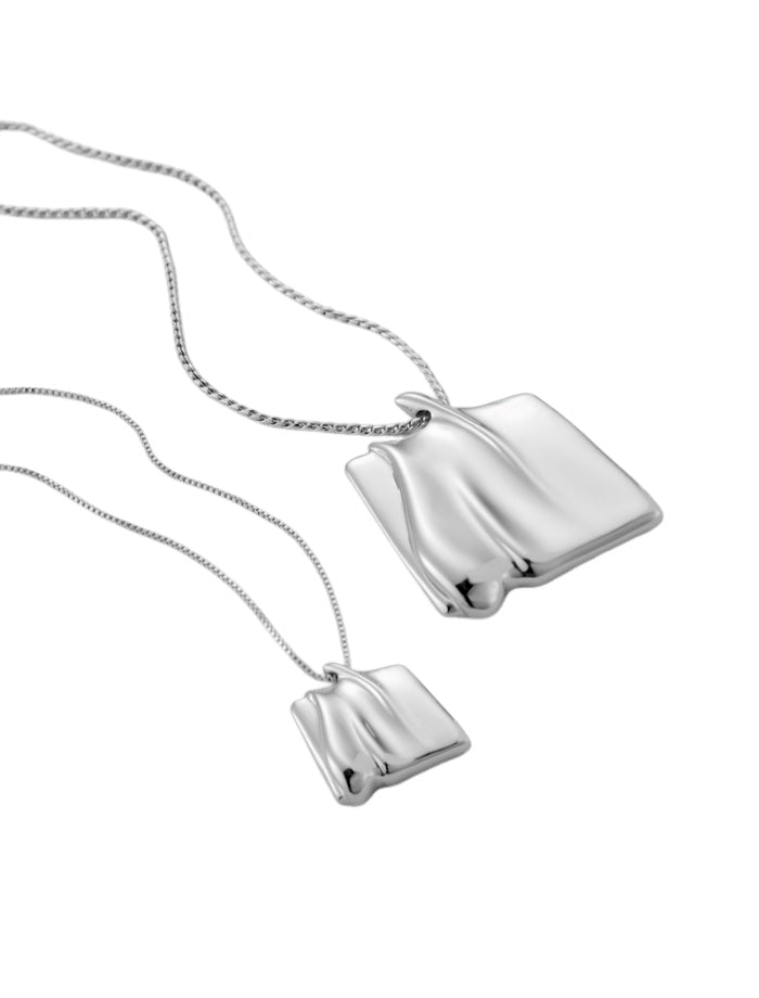 Jenny Bird Sundra pendant necklace inspired by sand dunes shaped by natural winds. The large organic square pendant glides along a silver chain. Features a shortening ring, making it easy to adjust and wear at 18" or 20".