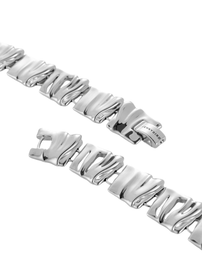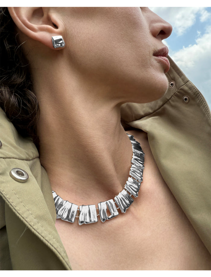 Jenny Bird collar necklace inspired by the sand dunes shaped by natural winds. Each organic square shape is linked together for a dynamic movement. Length: 45.7cm / 18"