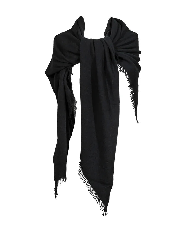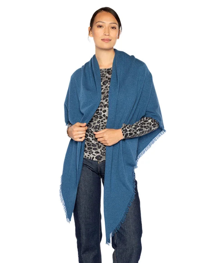 Kinross triangle wrap made for a cozy wrap on chilly days. Fringe at the bottom for a delicate, casual touch.
