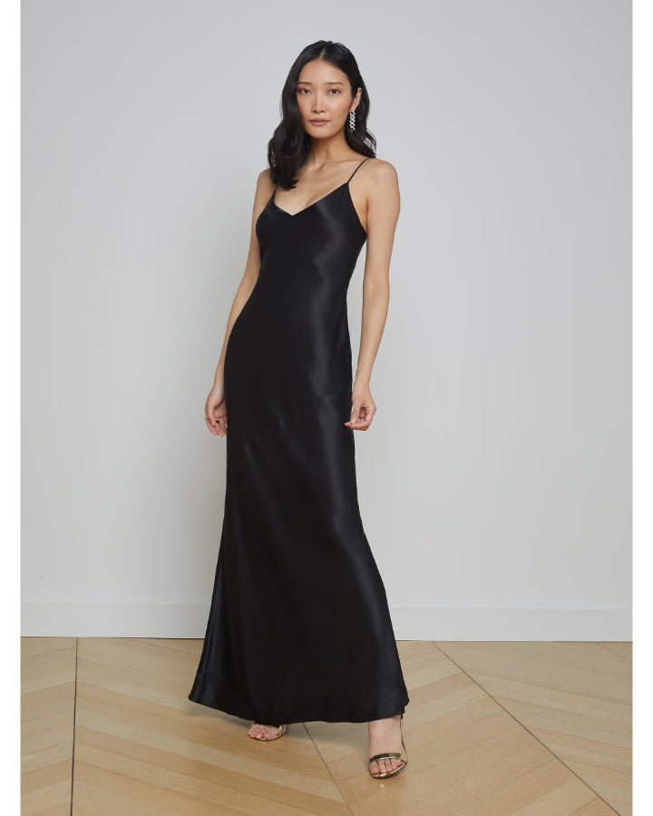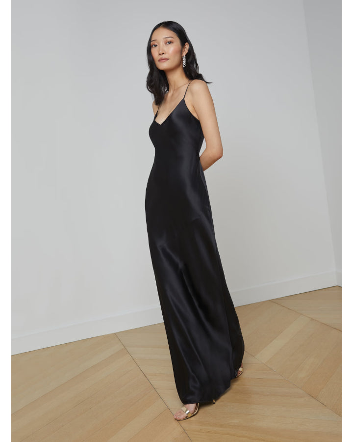 L'Agence glamourous silk charmeuse silk slip gown in a bias cut with adjustable spaghetti straps and v-neckline. Size 2 - Length 55"