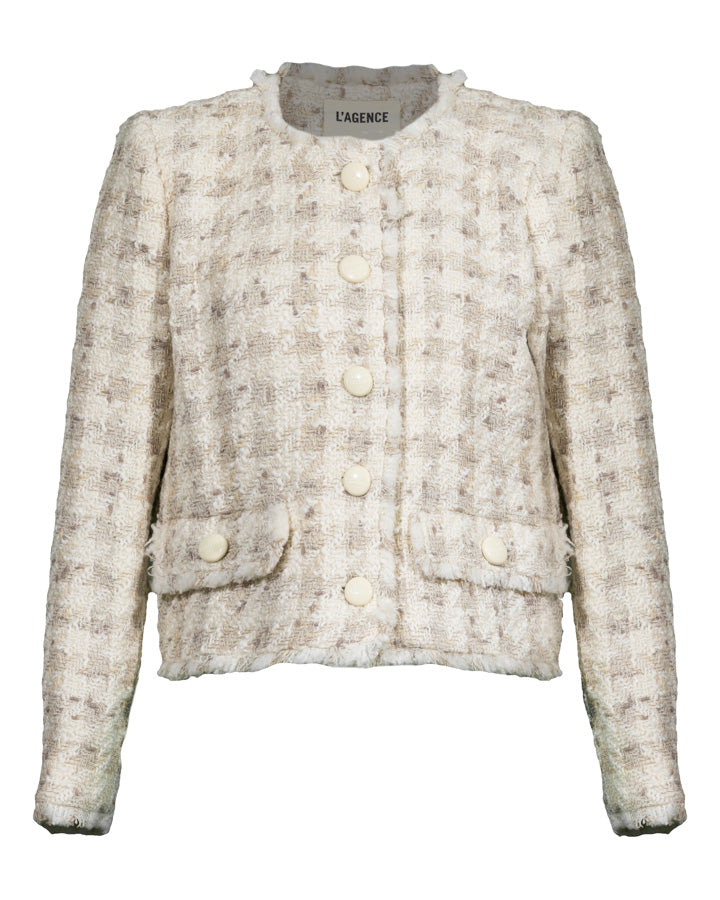 L'Agence Zell Tweed Collarless Jacket