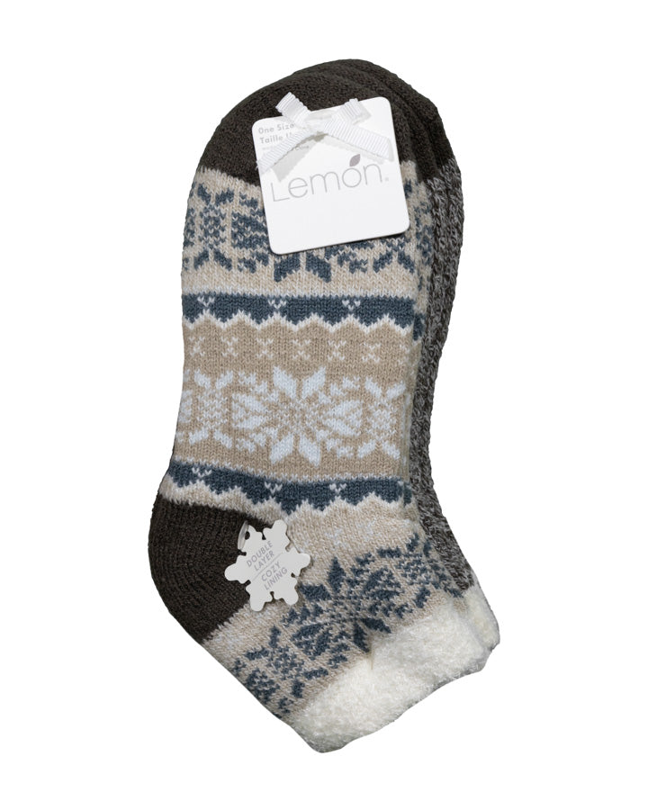 Lemon cozy socks in a two-pair pack, featuring a warm-retaining double layer to keep your feet warm all day.