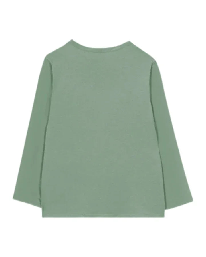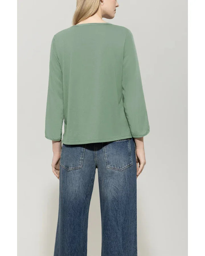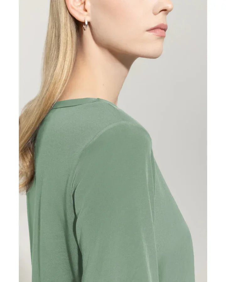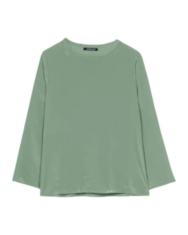 Luisa Cerano mixed media top with a round neckline and a side slit hem. The front and 3/4-length sleeves are made of flowing techno silk. The back is made of jersey material.