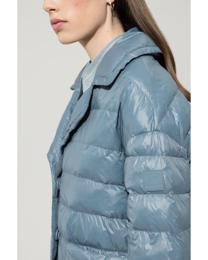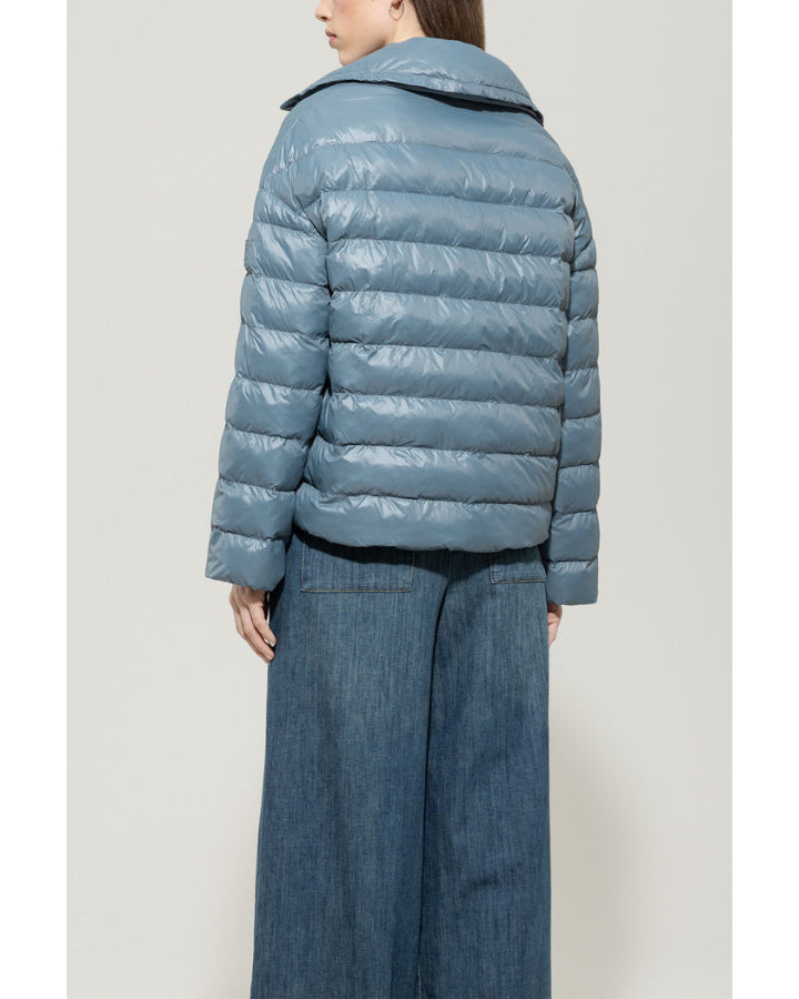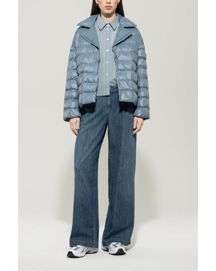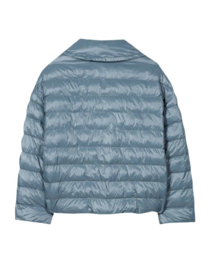 Luisa Cerano boxy cut, lightweight quilted jacket has a slightly cropped silhouette with snap button closure, peak lapel and patch pockets.