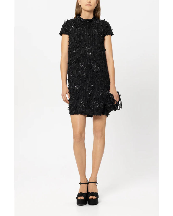 Luisa Cerano Sequin Pearl Tweed Shift Dress