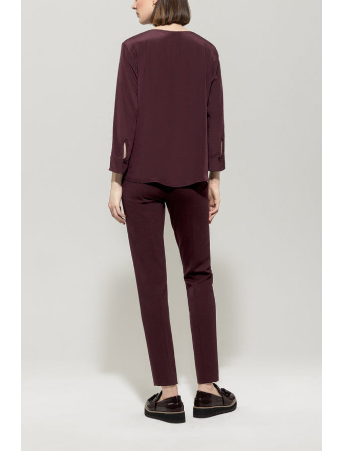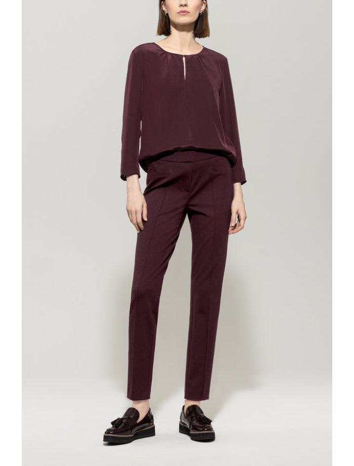 Luisa Cerano Punto Milano pants in a slim silhouette and a slightly cropped cut. Features a comfortable elasticated waistband, piping on the front, and two pockets on the front and back.