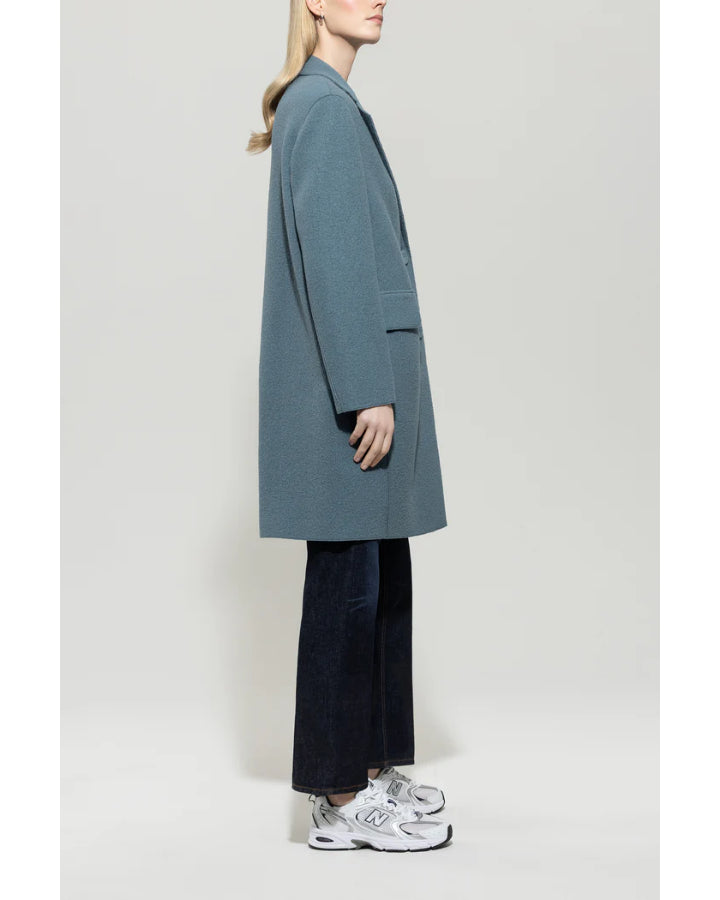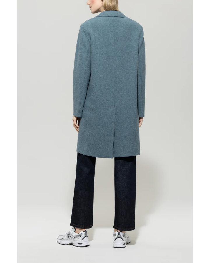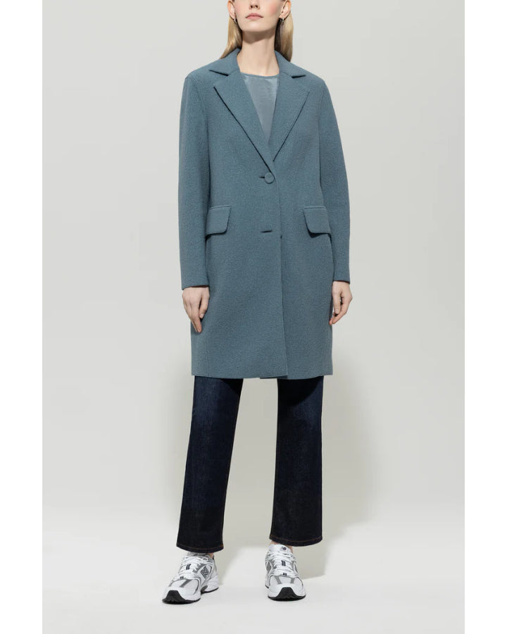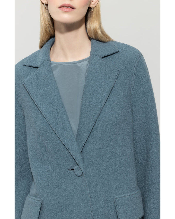 Luisa Cerano high quality virgin wool short blazer coat with lapel collar, button placket closure and side flap pockets, unlined. Length 96cm.