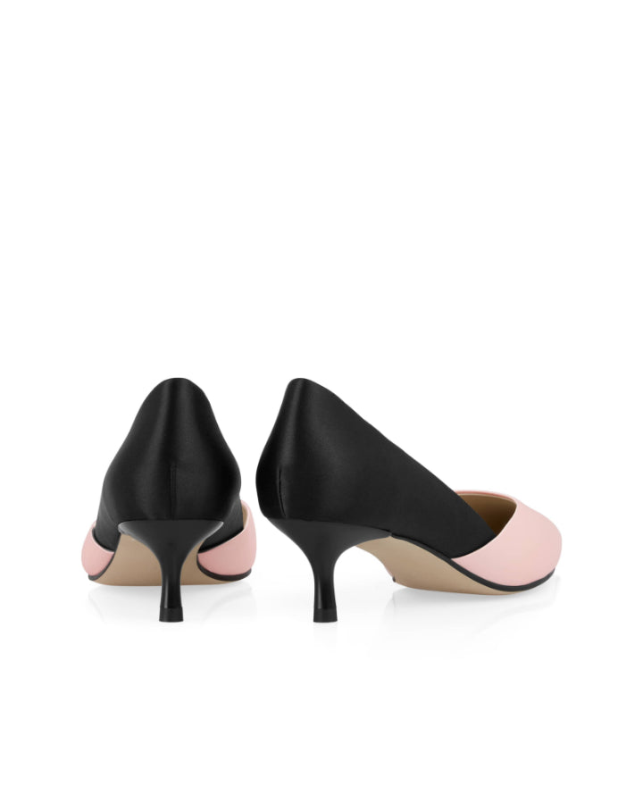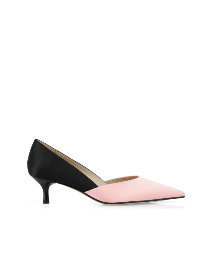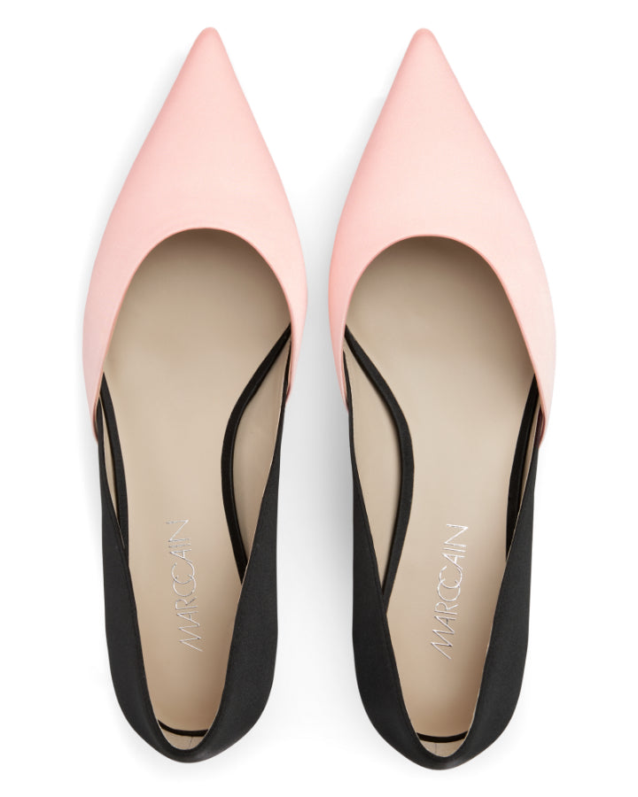 Marc Cain shimmering fabric trim contrast two tone pumps with pointed toe. Heel Height 2".