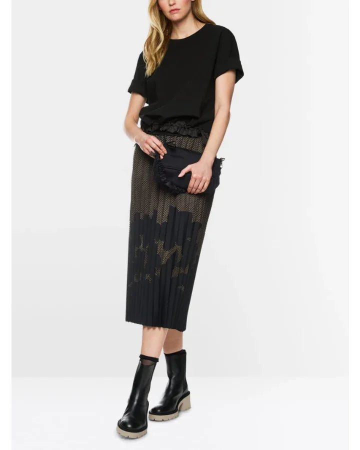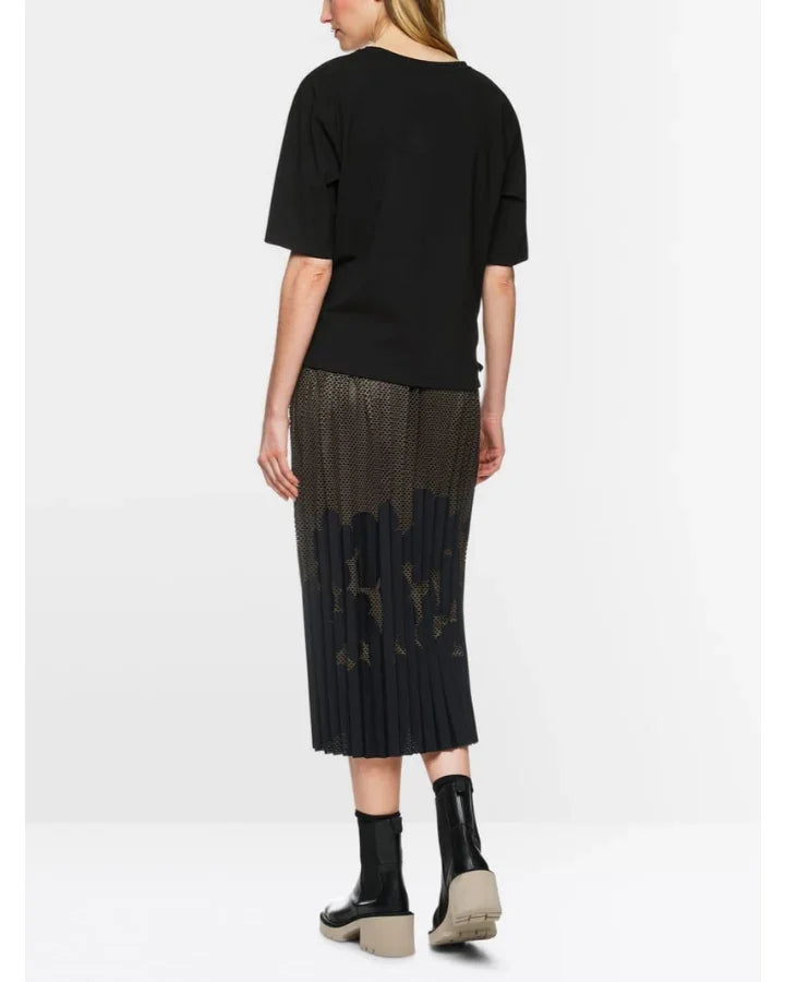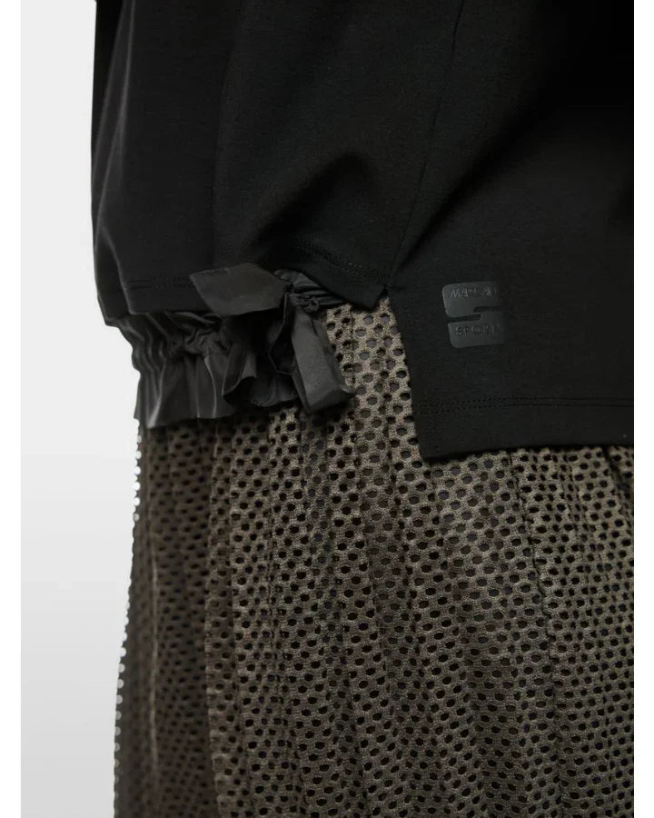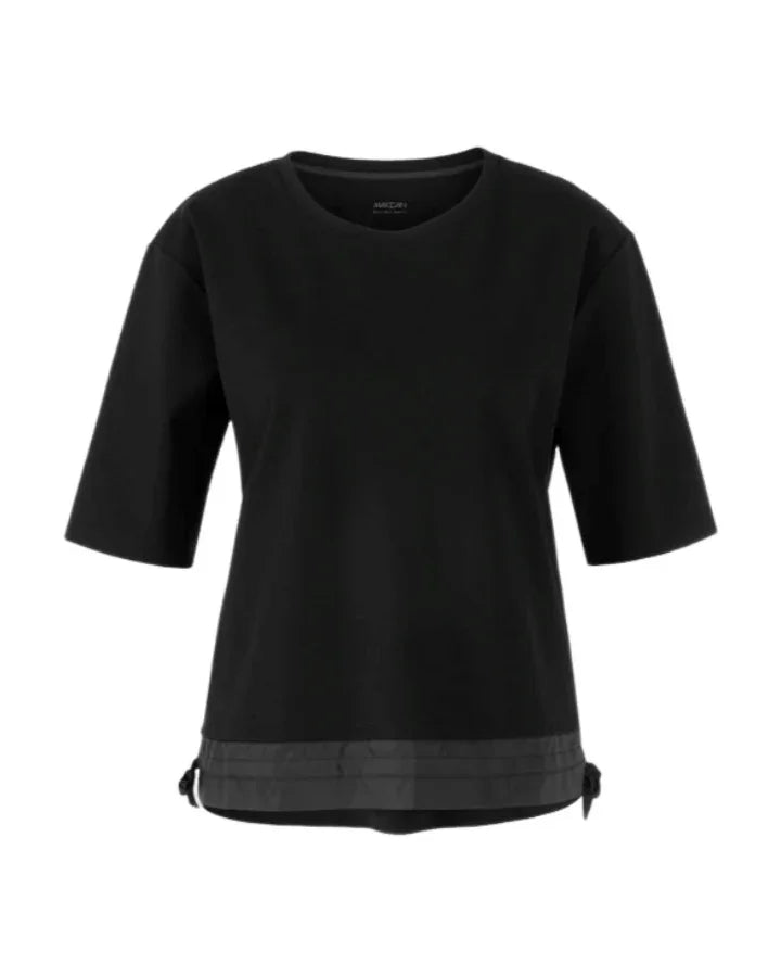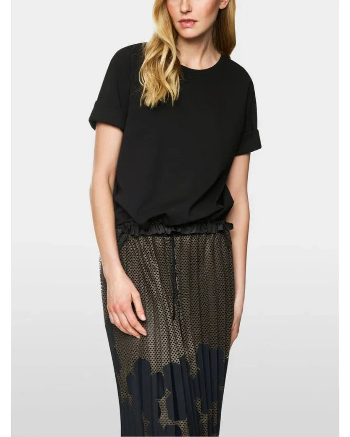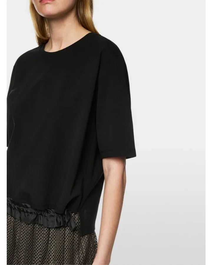 Marc Cain cool, boxy fit tee with extended, wide sleeves and round neck. With its sturdy cotton fabric, this garment keeps its shape perfectly. A playful detail: the drawstring at the front hem made from sports material can be adjusted as required.