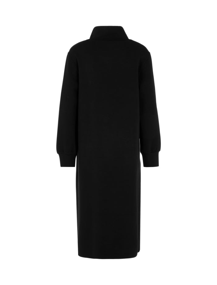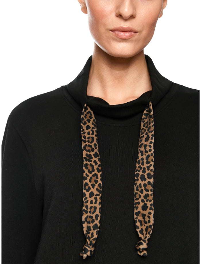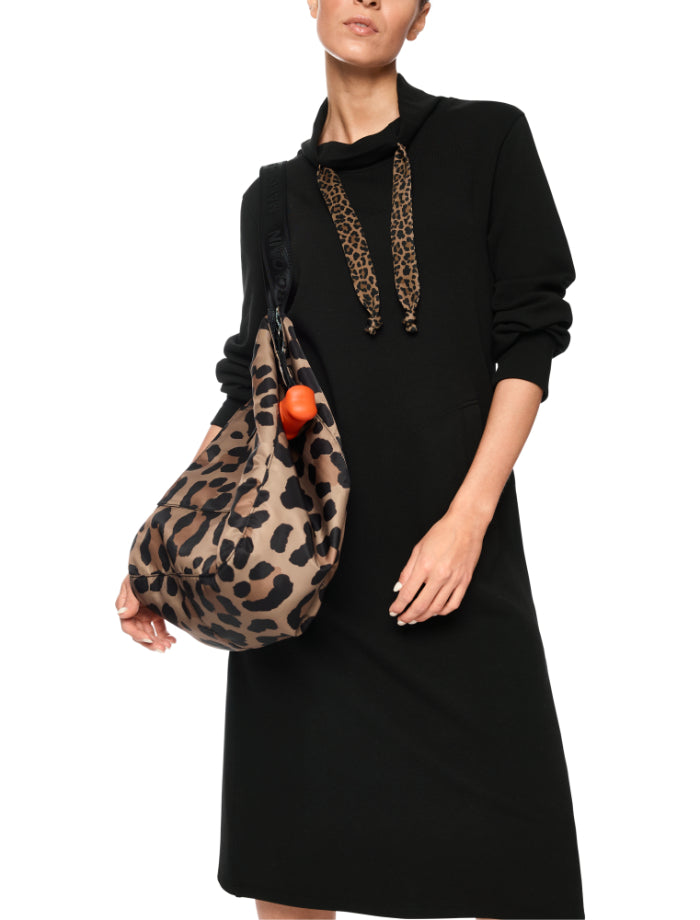 Marc Cain midi sweatshirt dress with a leopard print cord, a stand-up collar, and two pockets at hip height.