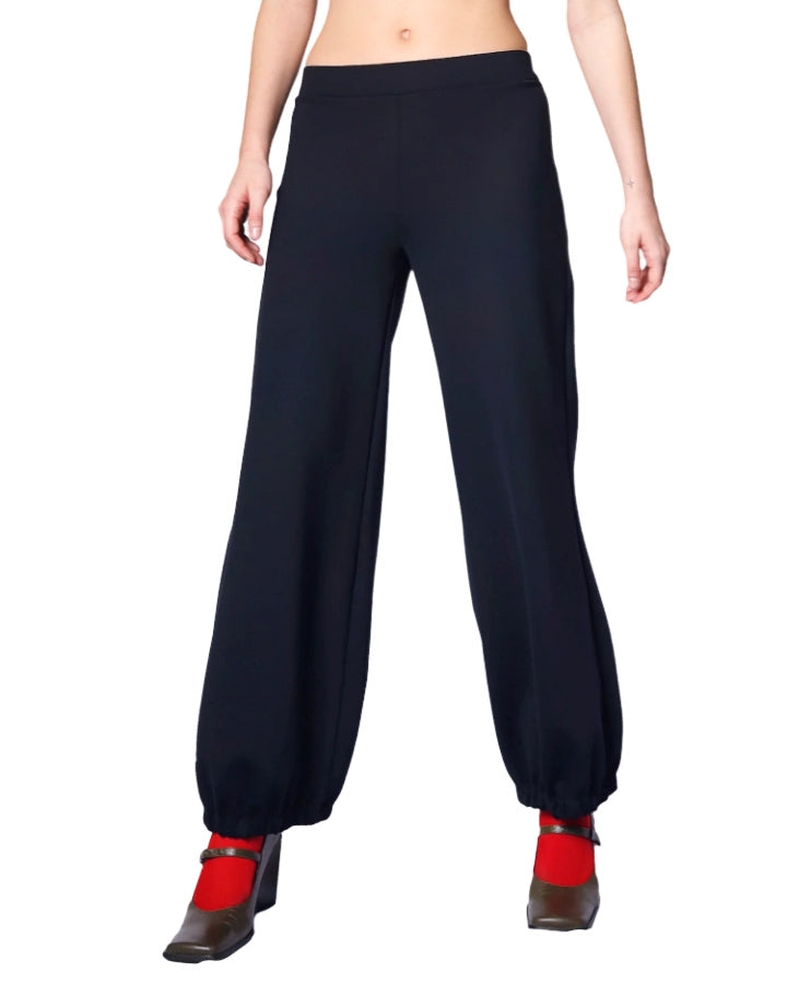 Marie Saint Pierre wide leg pants cut from fluid fine scuba fabric featuring an elastic waistband and elasticized ankle cuffs for a sculptural, ballooned silhouette. The smooth, structured fabric offers all-day comfort with a refined finish.