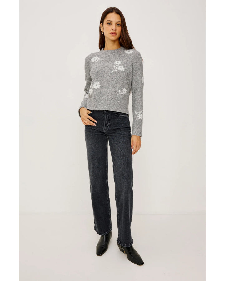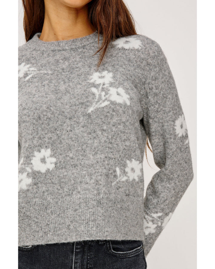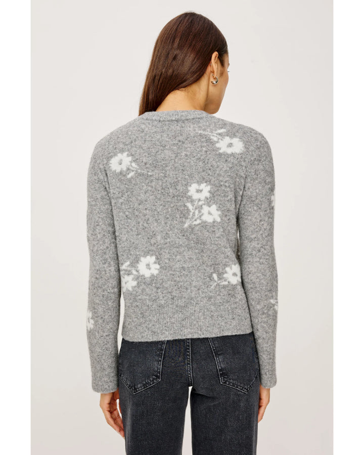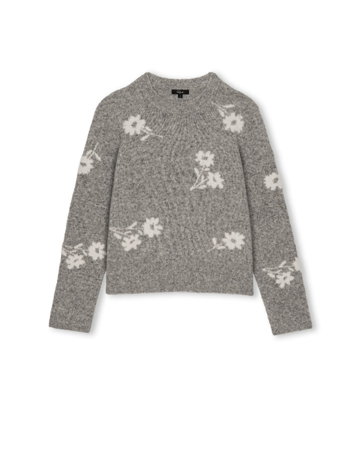 Rails sweater exudes feminine charm with vintage-inspired contrast floral motifs. Knitted from a cozy wool blend, it features a classic crew neckline, long sleeves, and a relaxed, boxy fit. Size S - Length 20.5".