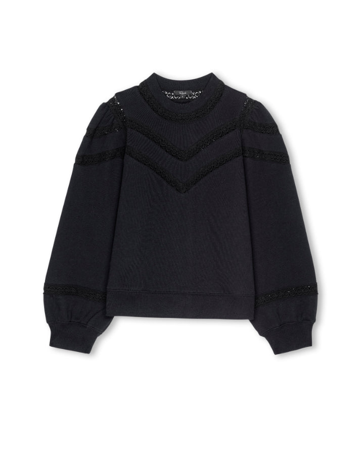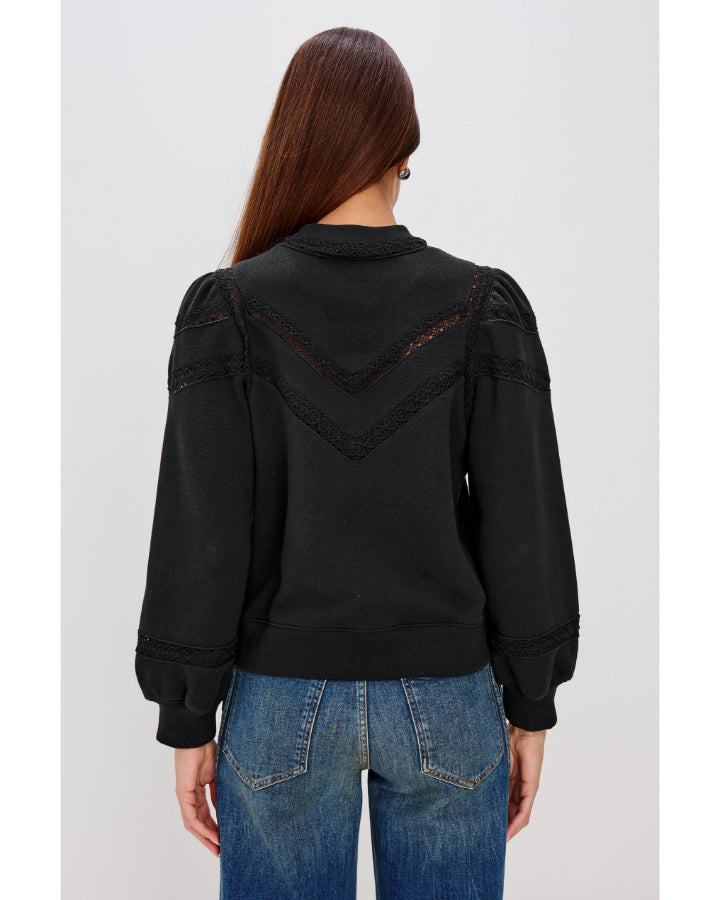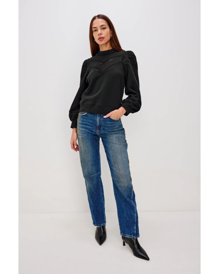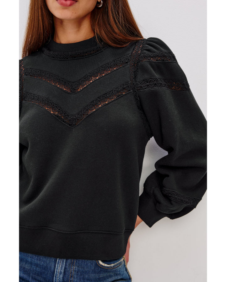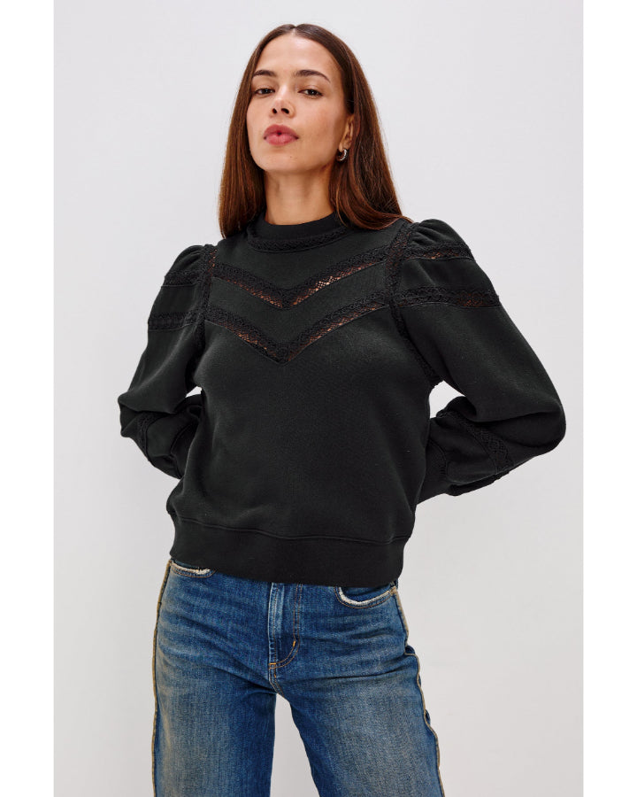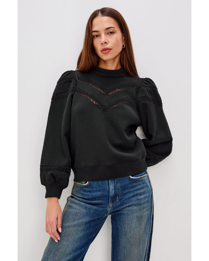 Rails super feminine, relaxed, slightly cropped sweatshirt with a timeless mockneck, sheer embroidered detailing, long puff sleeves, and ribbed trim. Size S - Length 22.25".